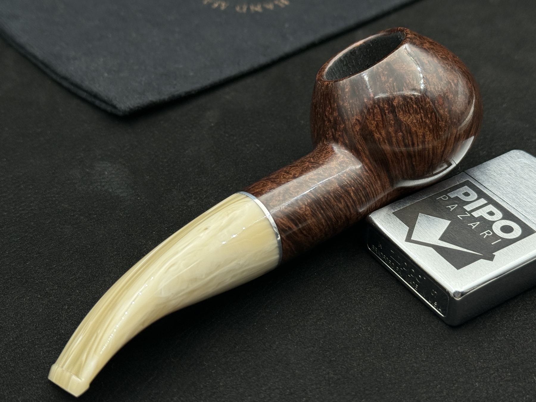 306 ASH Author modelinde shank ve hazne arasındaki geçiş, “gözle izlenen yumuşak bir dirsek” değil, “formun nefes aldığı bir ayraç” gibidir. Smooth briar yüzey, parıltısını “keskin bir spot ışığı” gibi değil, “olgun bir gün ışığı” gibi taşır. Akrilik ağızlık, bu olgun ışığın sonunda doğal bir parlaklıkla bağlanır. Metal bant, shank ile hazne arasında “bir ünlem değil, bir virgül” gibi durur; dikkat çeker ama dramatize etmez. Bu model, briarın doğal karakterini formun içinde abartmadan görmek isteyen, tasarımın ritmini seven içiciler için güçlü bir seçimdir.
