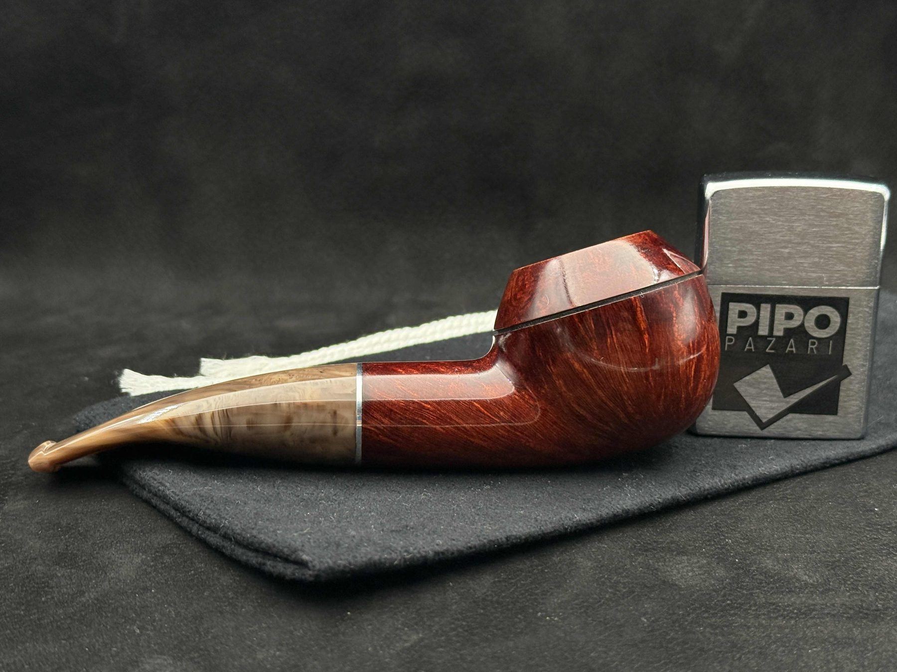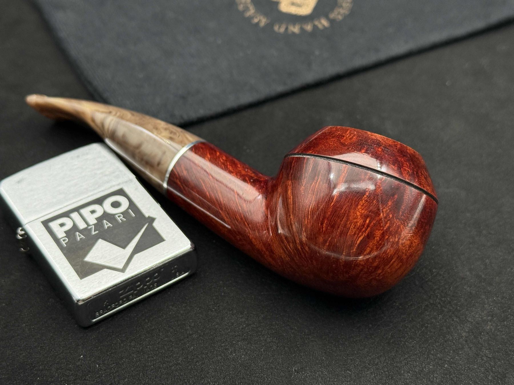 309 ASH Smooth Bent, elde doğal bir akış oluşturan eğimi ve rötuşu iyi ayarlanmış hatlarıyla konforu önceleyen içimlere odaklanıyor. Damar yapısı yüzey boyunca ahenkli bir şekilde ilerlerken, sıcak tonlardaki briar pipoya rafine bir zarafet kazandırıyor. Sessiz ama etkileyici bir duruş.