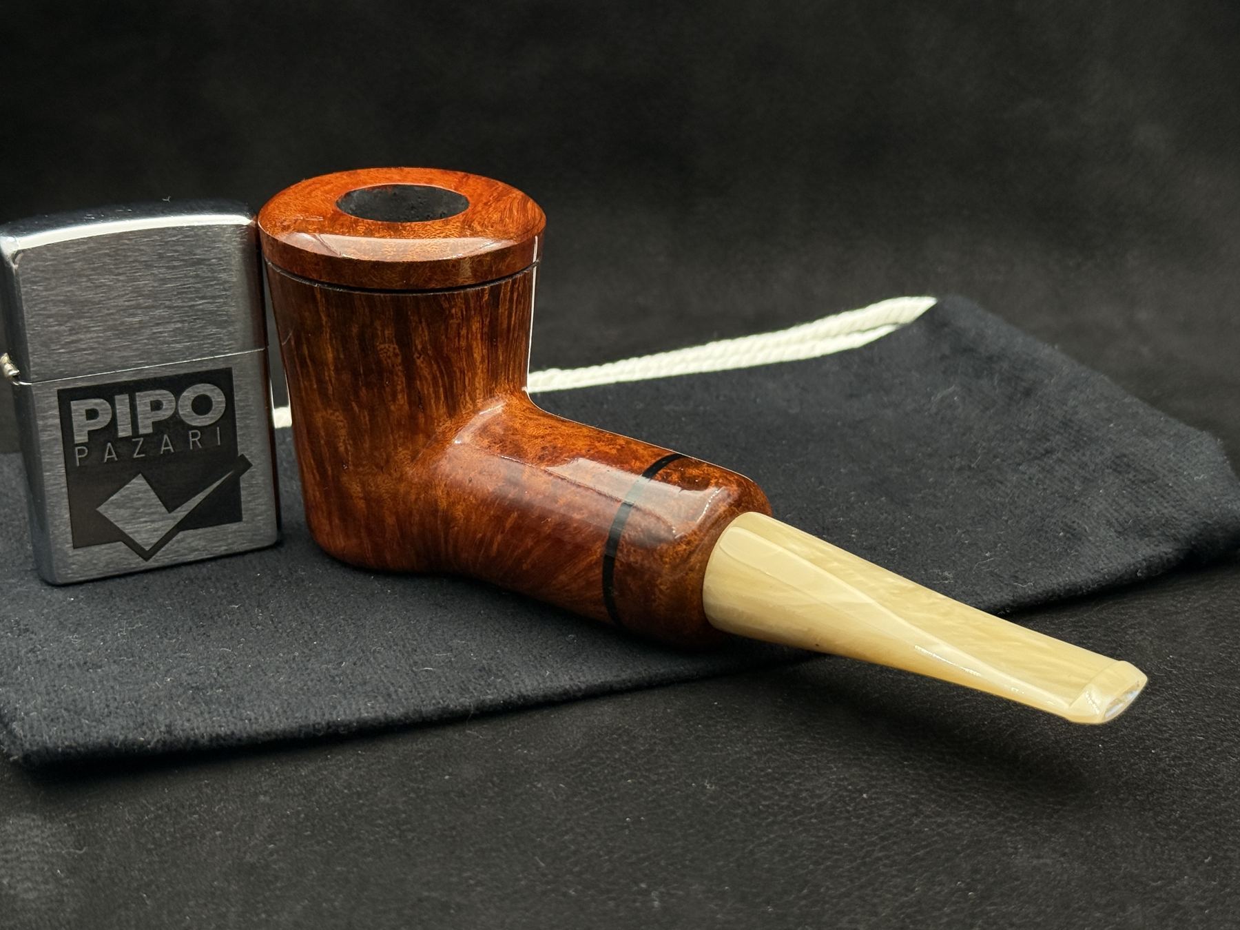 Geniş gövde, küt ve güçlü formuyla avuçta sağlam bir duruş sergiler. Hazne gövdesinin pürüzsüz yüzeyi ise hem estetik hem de dokunsal bir memnuniyet bırakır. Yoğun içimlerde serin, dingin ve konforlu bir tercih.