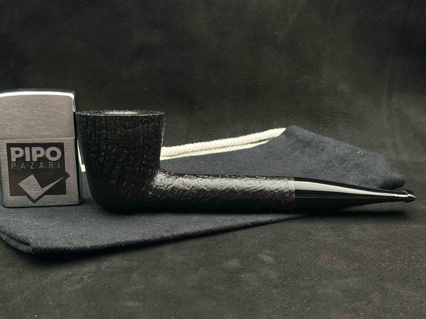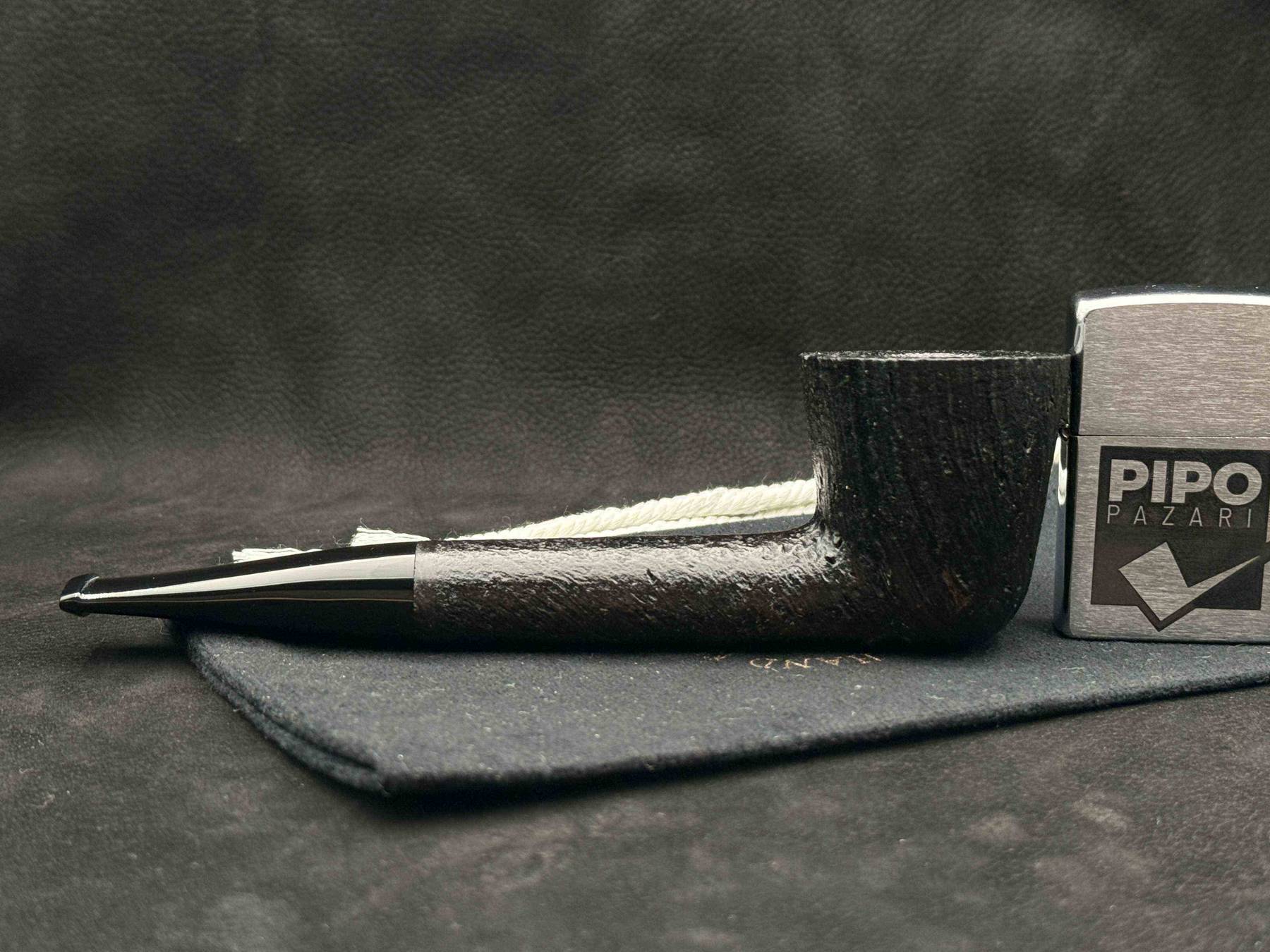 247 LS Liverpool Sandblast Billiard modeli, kumlama yüzeyin sunduğu zengin dokuyu sade bir form üzerinde öne çıkarıyor. İnce işlenmiş hatlar, piponun yıllar içinde daha da güzelleşecek derin bir yüzeye sahip olmasını sağlıyor. Liverpool formu, uzun sap ve dengeli hazne oranıyla geleneksel içim karakterini sunarken, siyah akrilik ağızlık ile güçlü bir kontrast yakalanmış. Her şey kararında… Klasik ama sıradan olmayan bir pipo.
