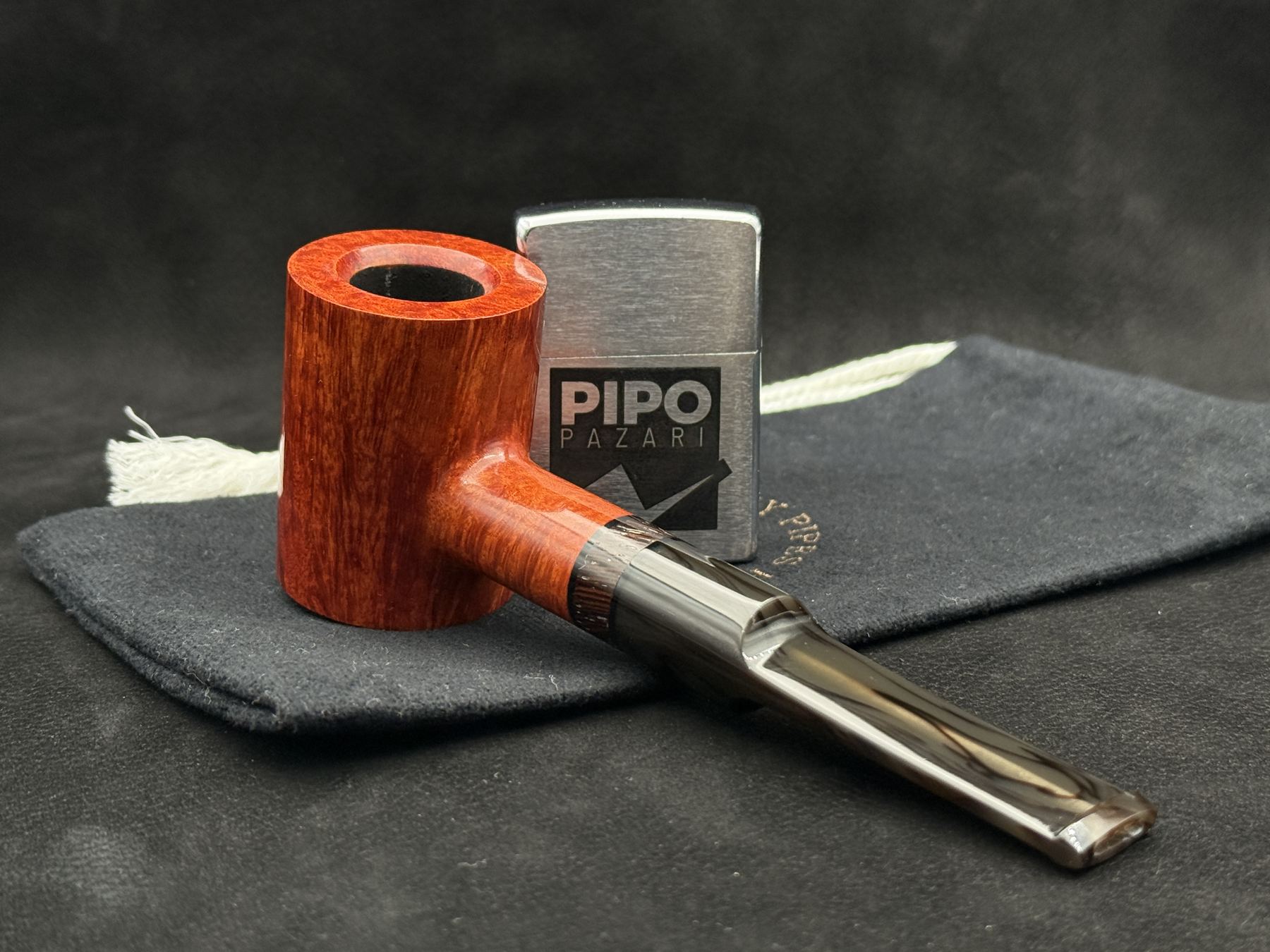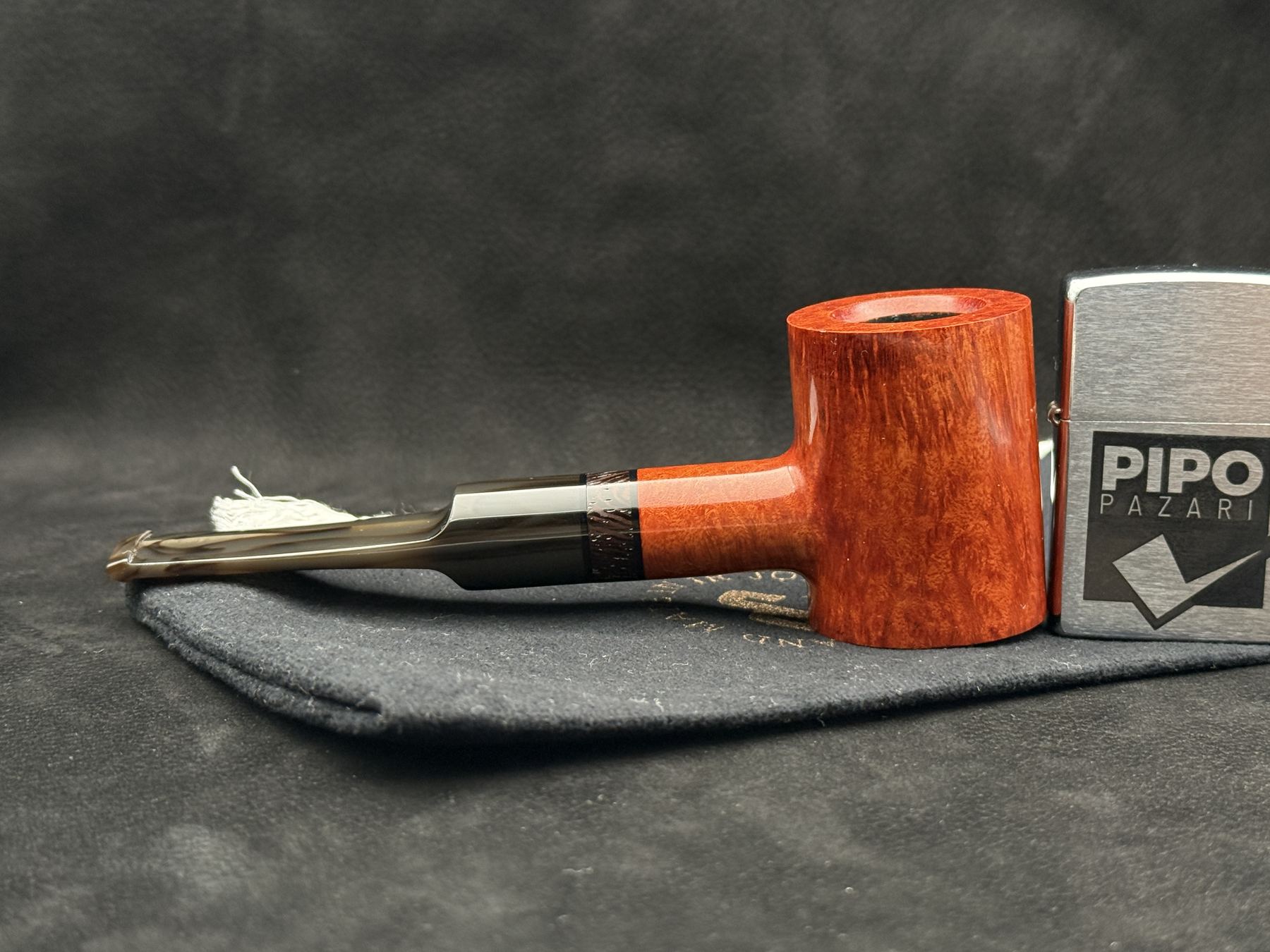 Pallas Cat 203 Smooth Poker modeli, temiz silueti ve net hatlarıyla dikkat çekiyor. Haznenin dik yapısı, gövdeyle kusursuz bir uyum içinde ilerliyor. Briarın içinden yükselen kızıl ve sıcak kahve tonları, ışık aldıkça farklı canlılıklar gösteriyor. Yüzey dokusundaki pürüzsüzlük, ustanın bitirişteki titizliğini açıkça hissettiriyor. Ağızlığa uzanan şaft bölümü ise piponun modern çizgisini tamamlayan sakin bir akış sunuyor.