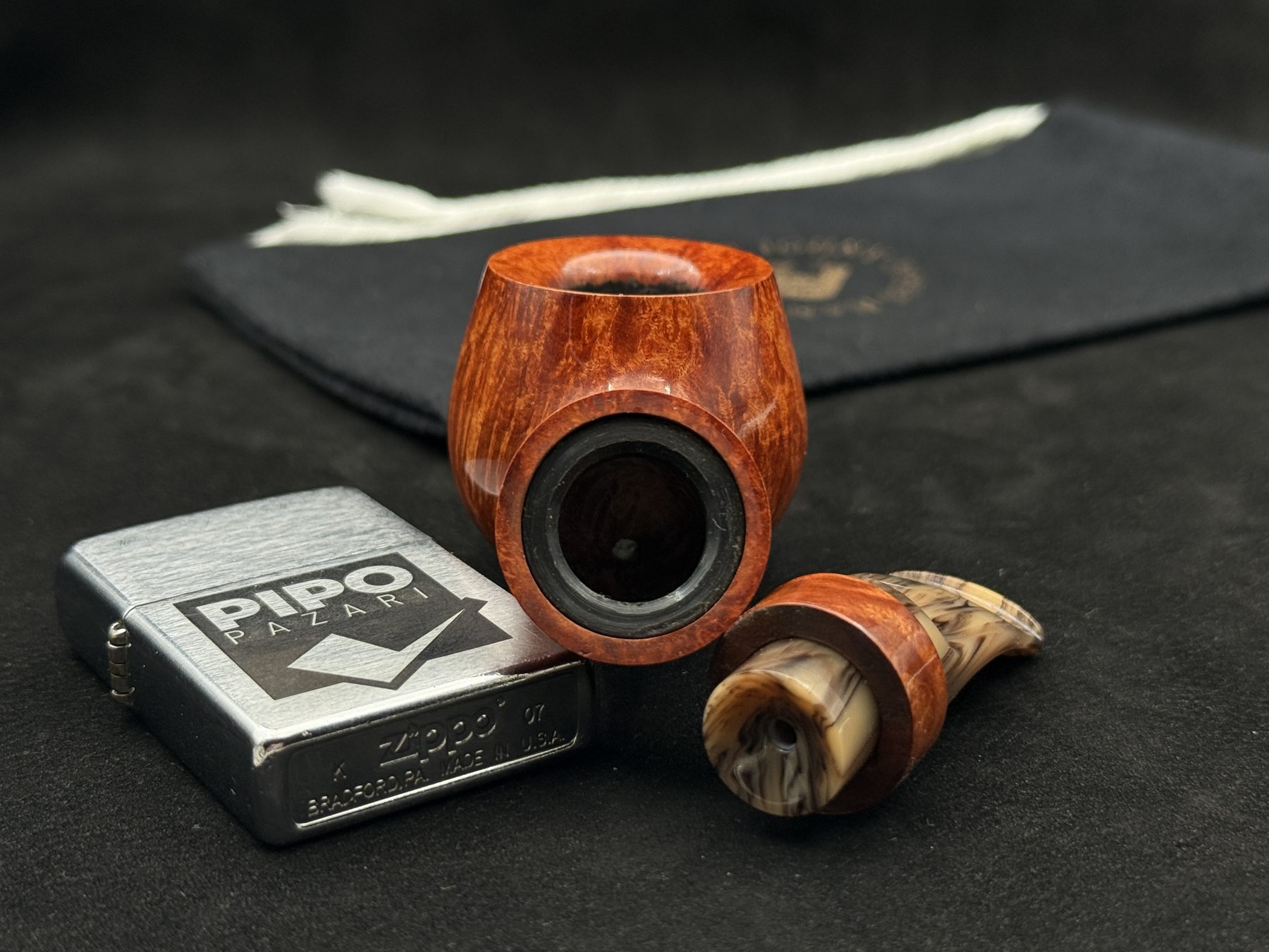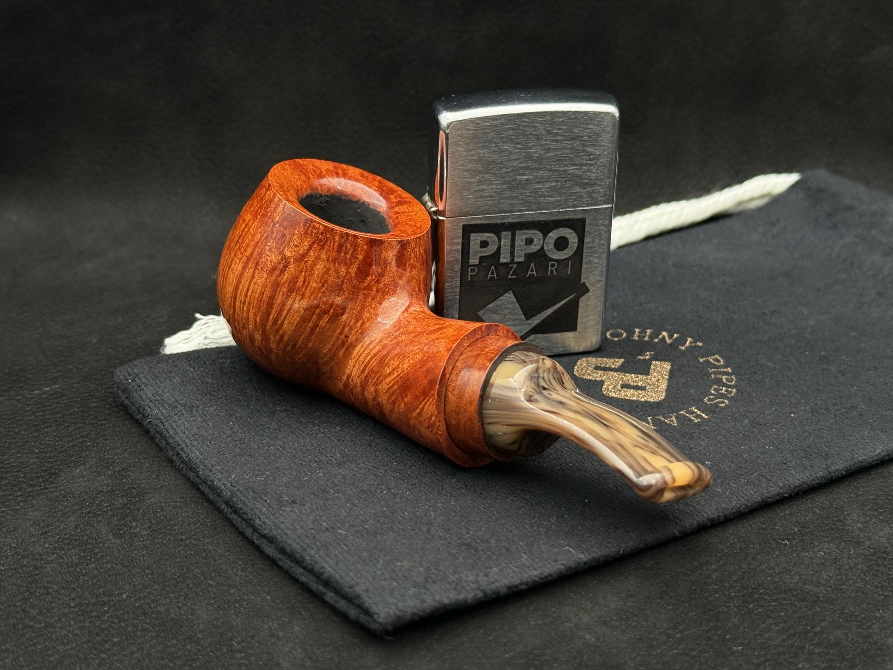 JohnnyPipes, İran’ın pipo atölye kültürünü, briar’ı sessiz ama olgun bir tasarım hattıyla şekillendiren bir markadır. Usta Johnny için finish, pipo karakterinin ilk görsel sözcüğü değil; temasın ilk cümlesidir. Reverse Calabash formu, markanın duman akışını bir grafik gibi değil, bir oran ve hacim dengesi gibi sunmasını sağlar. 403, bu denge dilinin en akıcı ama abartısız temsilidir.