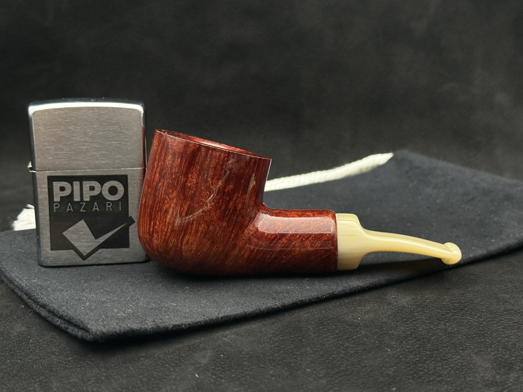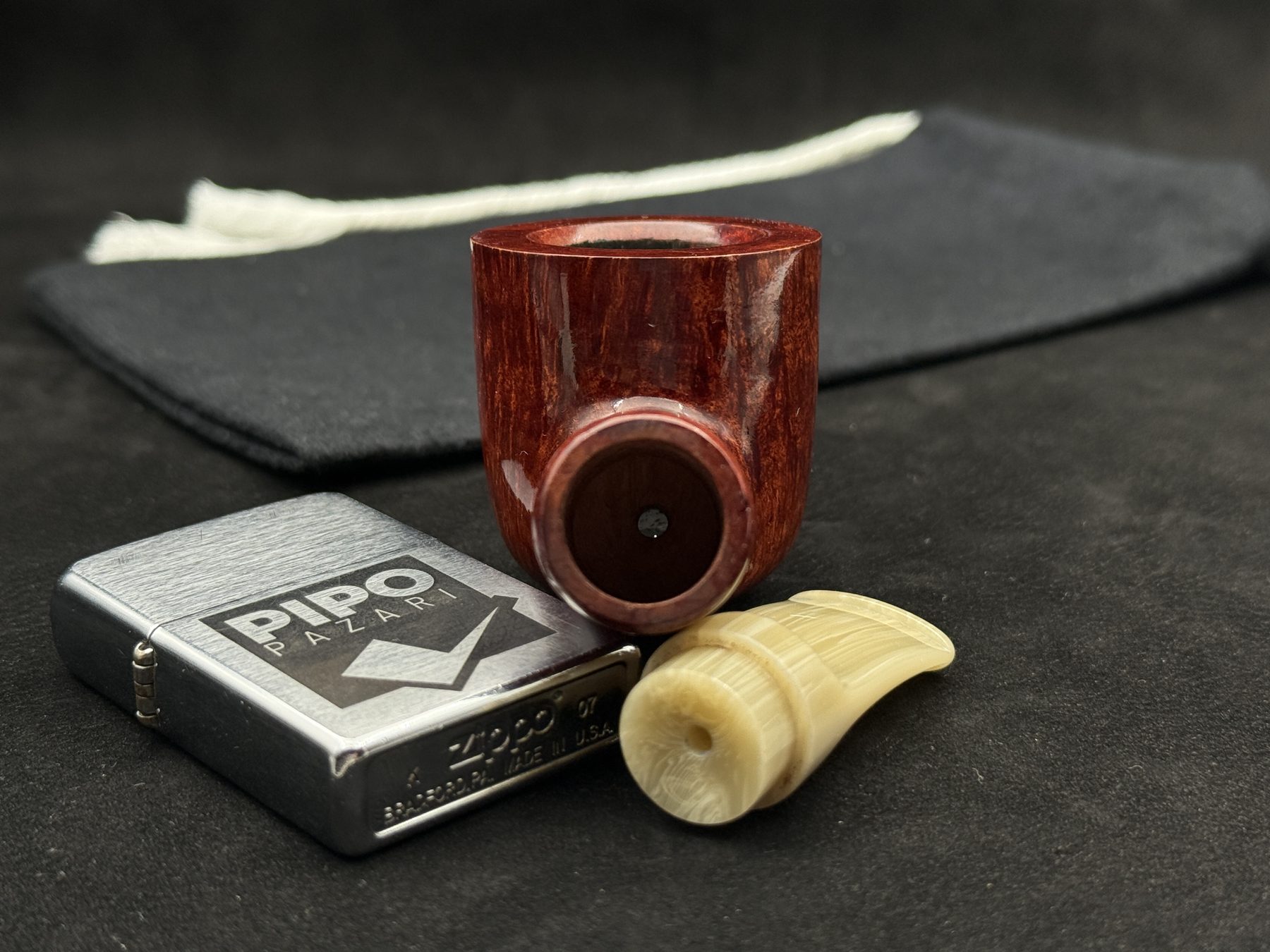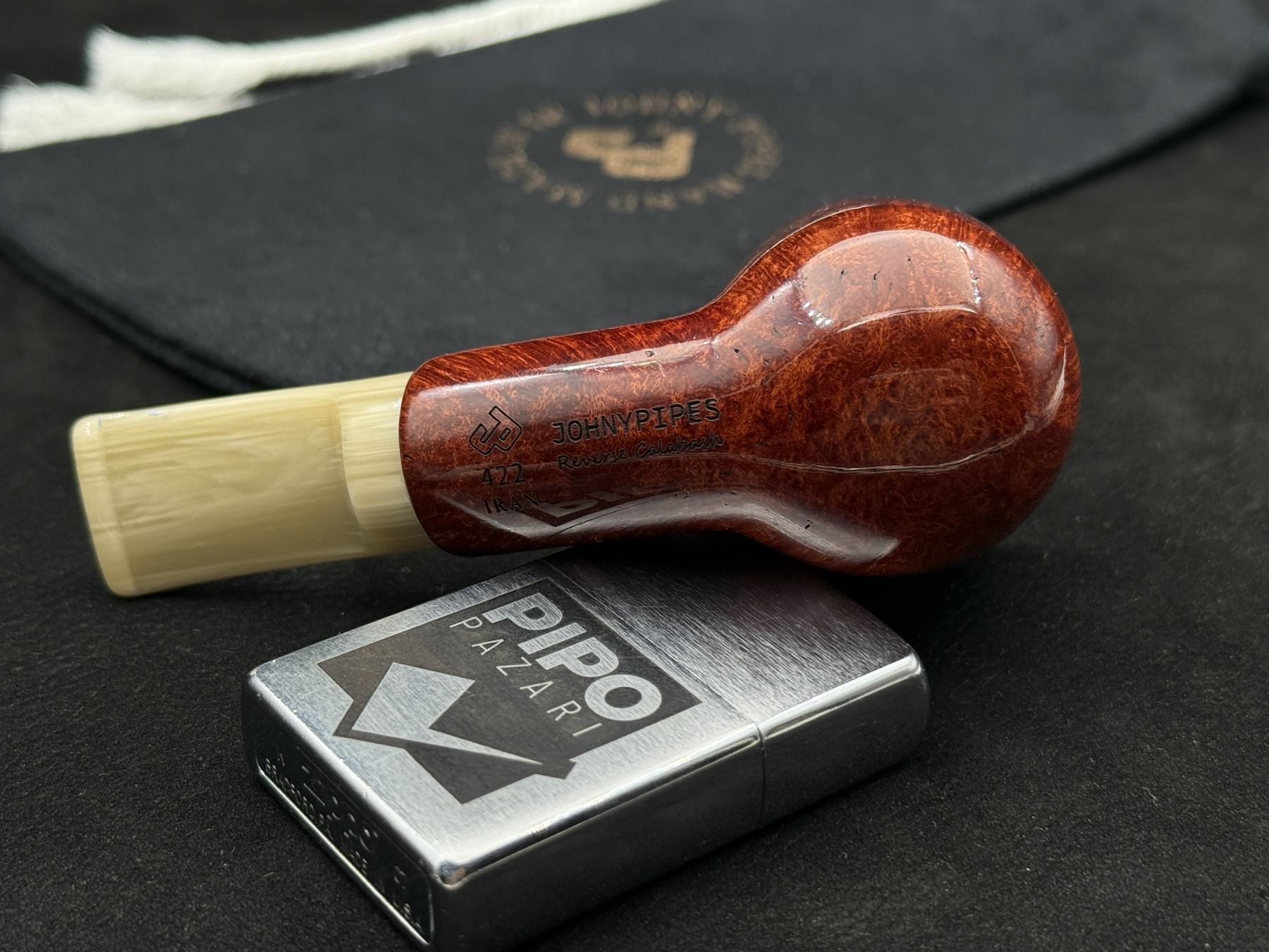 JohnnyPipes, İran pipo zanaatını modern koleksiyoncu algısının talepleriyle buluşturan, finish ve formu kimlik taşıyıcı unsurlar olarak gören bir atölye markasıdır. Ustanın yaklaşımı, briar damarlarını bir görsel efekt değil, formun doğal ortağı olarak işlemek üzerine kuruludur. Reverse Calabash tasarımı, markanın içten soğutma ve akış kontrolü prensibini estetik bir forma dönüştürür; fakat bunu dramatik bir anlatı gibi değil, mimarinin içine gizlenen bir karakter olarak sunar. 422, JohnnyPipes’in tasarım dilinde olgun ama sade bir temsil niteliği taşır.