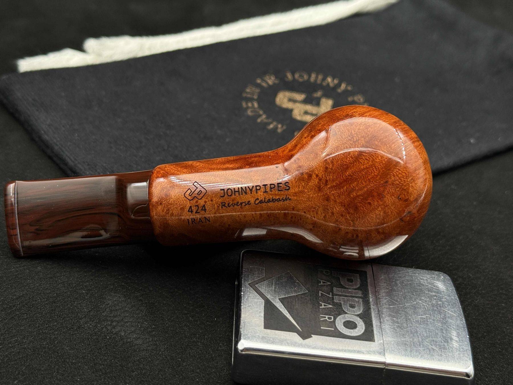 JohnnyPipes, İran’da pipo tasarımını briar’ın doğal damar karakterini bastırmadan işleyen, yüzey işçiliğini formun bir parçası gibi ele alan bir atölye markasıdır. Reverse Calabash mimarisi, dumanın rotasını grafiğe çevirmeden formda hissettiren markanın imza dilidir. 424 hattı, ustanın dengeyi simetri değil, akışta uyum olarak tanımladığını gösterir.