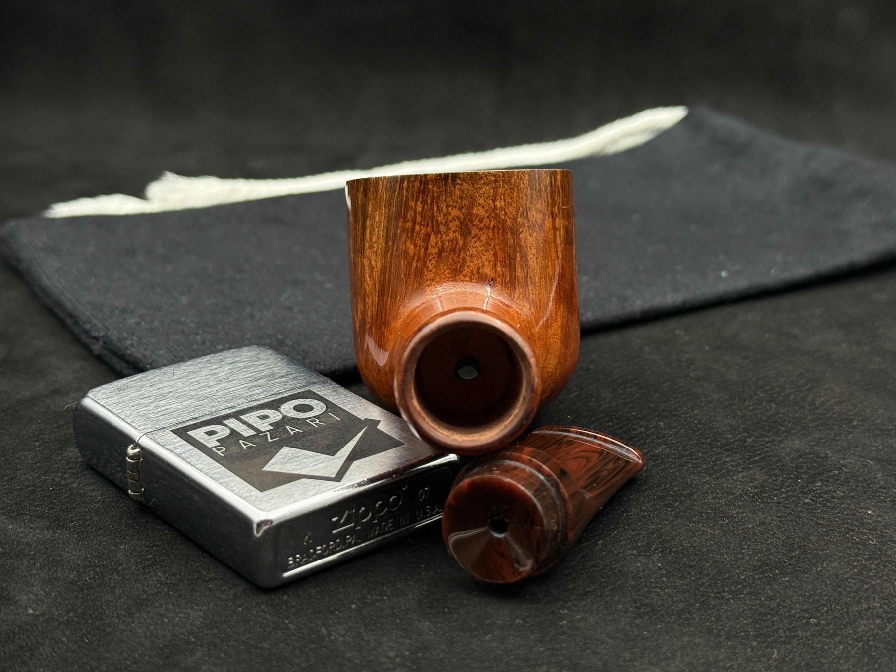 Bu pipo, ipeksi bir görsel denge noktasında çalışır; yüzeyin akışı bowl’un kıvrımlarını takip eden kesintisiz bir ritim sunar. Cila, piponun karakterini ışıkta kibirle değil, olgun bir parlaklık disipliniyle gösterir. Stem ve shank arasındaki geçiş, grafik bir kopma değil, tasarımın temasını sürdüren bir temas ortağı gibi çalışır. Akrilik stem, nostaljiye yaslanmadan, formun çağdaş ortağı gibi eşlik eder. 424, JohnnyPipes’in ipeksi denge anlayışını en sakin ama en karakterli taşıyan yorumlardan biridir.