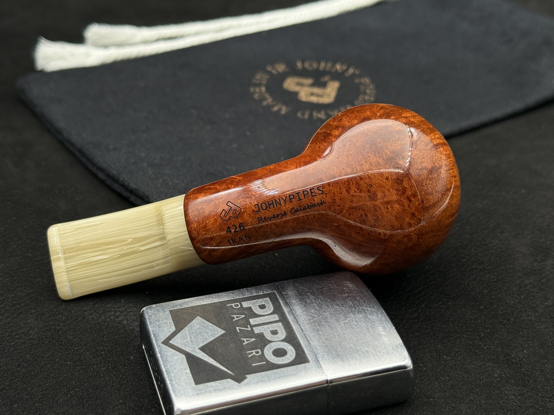 JohnnyPipes, İran’ın küçük atölye sabrını, briar’ı formun partneri gibi işleyen bir üretim disipliniyle temsil eder. Reverse Calabash mimarisi, markanın duman akışını grafik bir anlatı olarak değil, formun içine gizlenen bir karakter olarak işlediği tasarım hattıdır. 426, ustanın finish’i bir vitrin değil, kimliğin kendisi olarak gördüğü modellerden biridir.