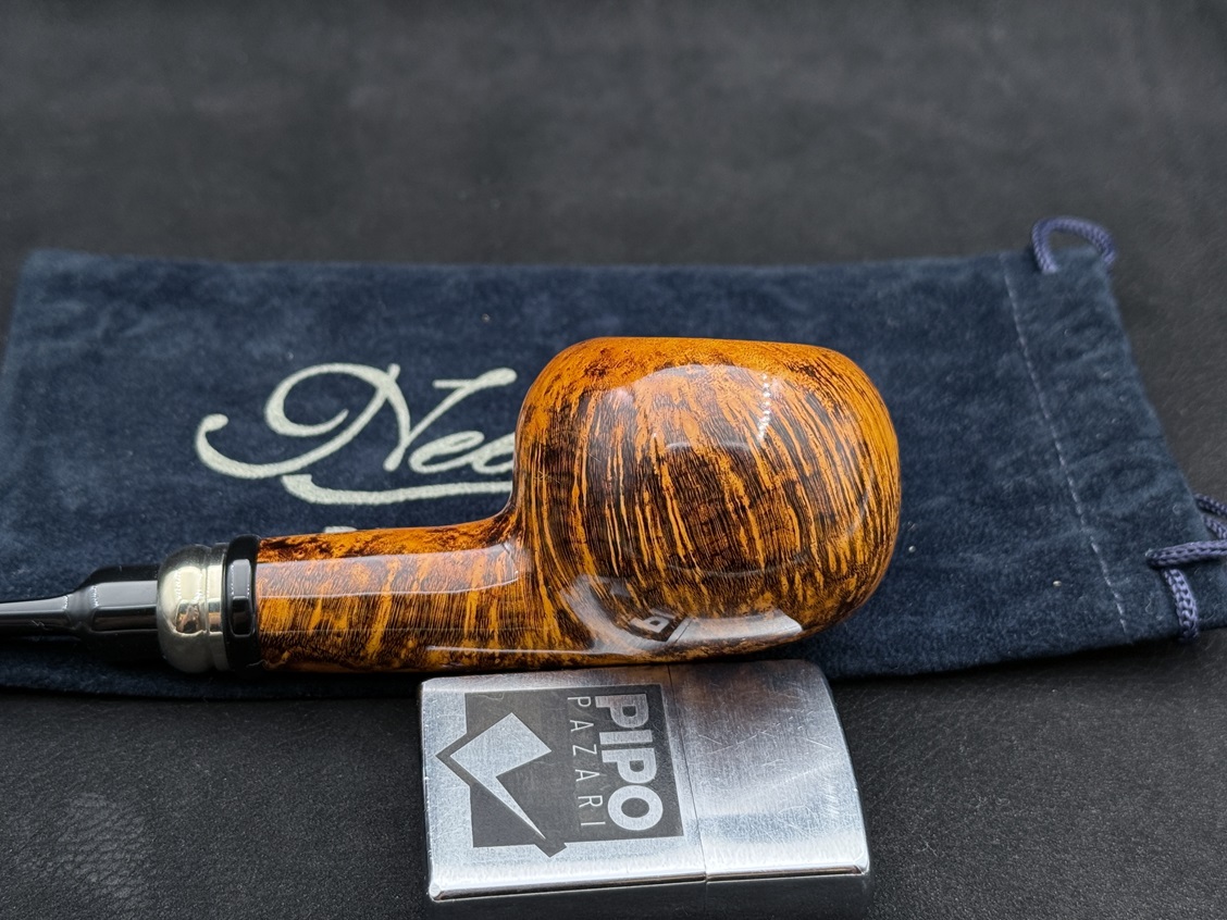 Danimarka pipoculuğunun zarif temsilcilerinden biri olan bu GR5 model, klasik billard formunun dengeli ve sade güzelliğini taşıyor. Düz sapı ve geniş haznesiyle hem estetik hem de işlevsel bir yapı sunan pipo, doğal briar damarlarının turuncu ve kahverengi tonlarla dans ettiği pürüzsüz yüzeyiyle dikkat çekiyor.