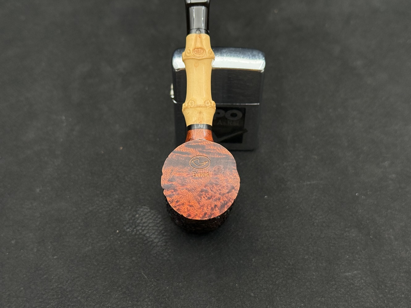 Bu modelde Eltang’ın imzası niteliğindeki bambu sap dikkat çekiyor. Doğal dokusu korunmuş bambu; rustik yüzeyli, silindirik “Poker” gövde ile birleşerek güçlü bir kontrast oluşturuyor. Derin kumlamanın oluşturduğu çarpıcı yüzey dokusu hem el hissini zenginleştiriyor hem de kökün doğal damarlarını karakterli bir biçimde öne çıkarıyor.