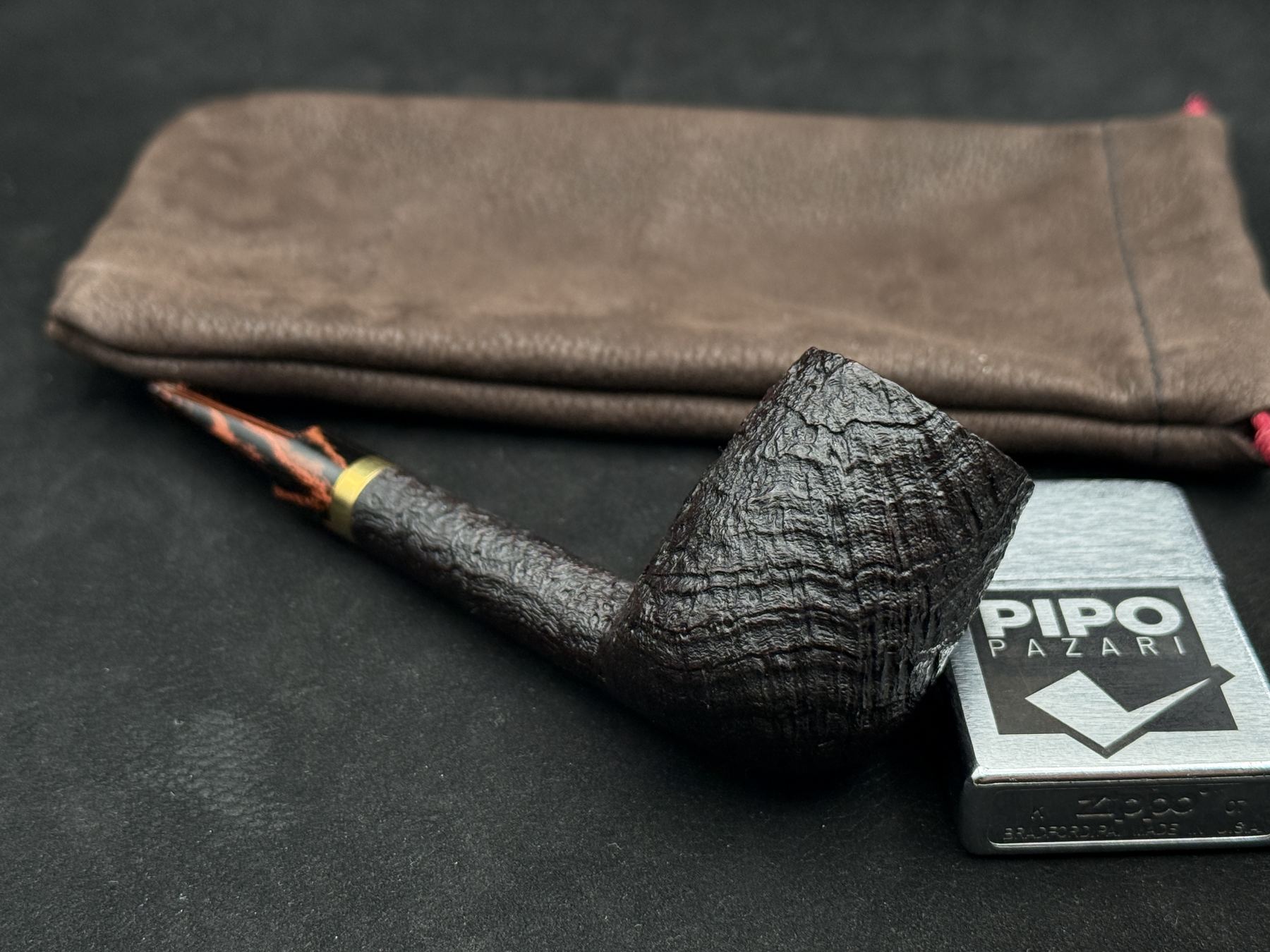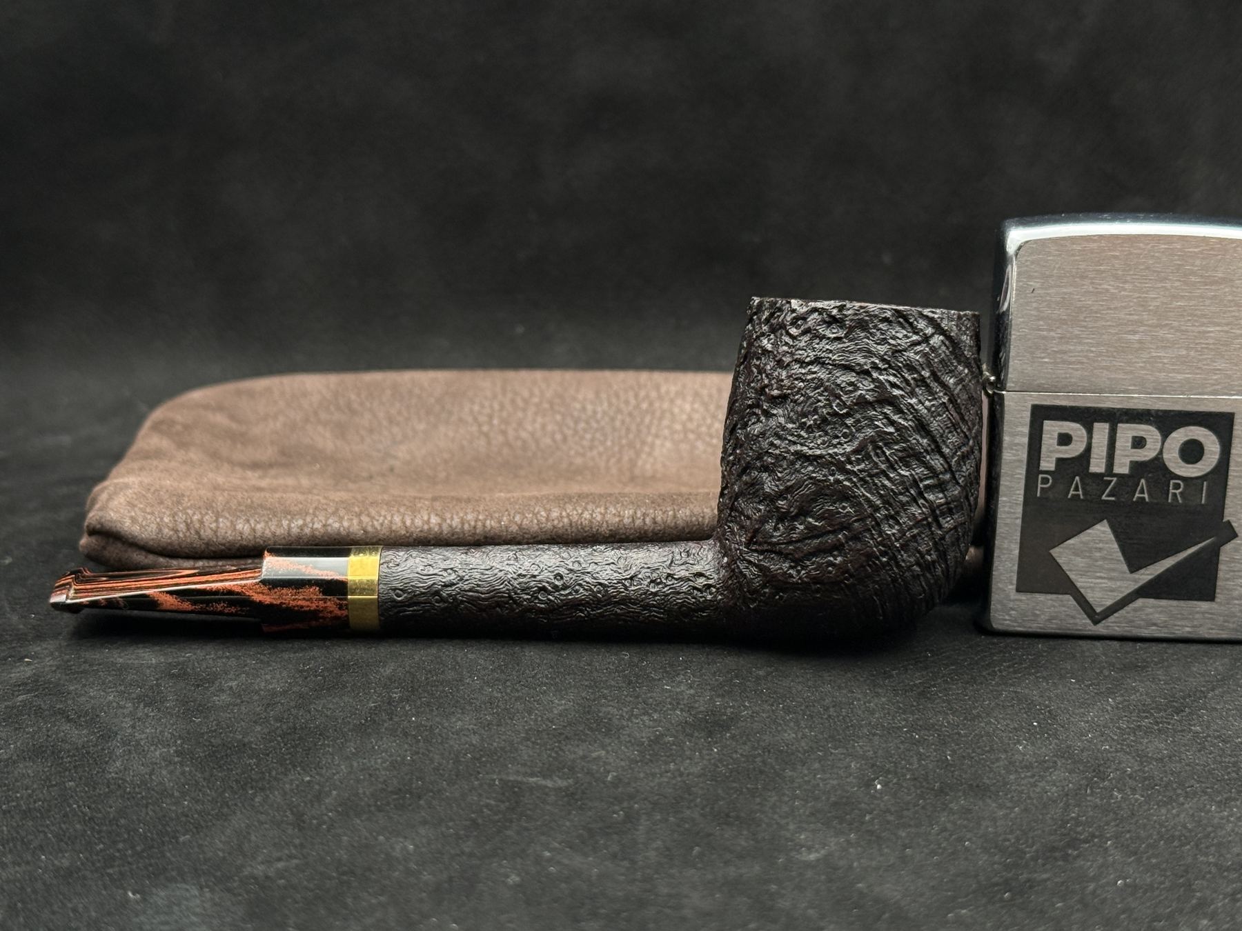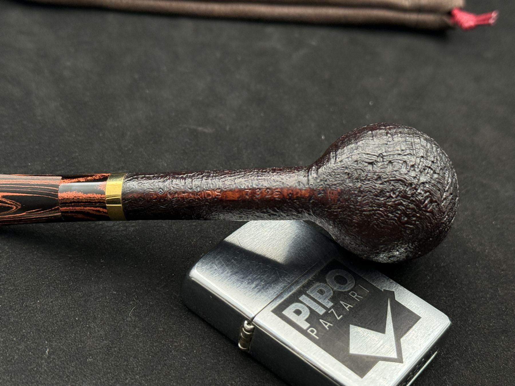 7325 numaralı modelde yer alan metal yüzük, pipoya hem görsel hem de yapısal bir vurgu kazandırır. Derin kumlama yüzeyi, briar ağacının doğal sertliğini ve karakterini öne çıkarırken, ebonit ağızlıkla bütünlük sağlar. Formun dengeli oranları, uzun içimlerde konforlu bir kullanım sunacak şekilde tasarlanmıştır.
