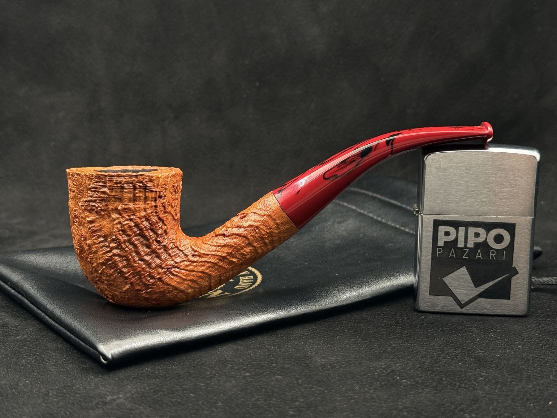 Kırmızı hareli Ashtonit ağızlık, modele güçlü bir kontrast ve modern bir dokunuş kazandırır. Dayanıklı yapısı ile uzun ömürlü kullanım sunarken, estetik açıdan piponun klasik formuna dinamik bir karakter ekler.