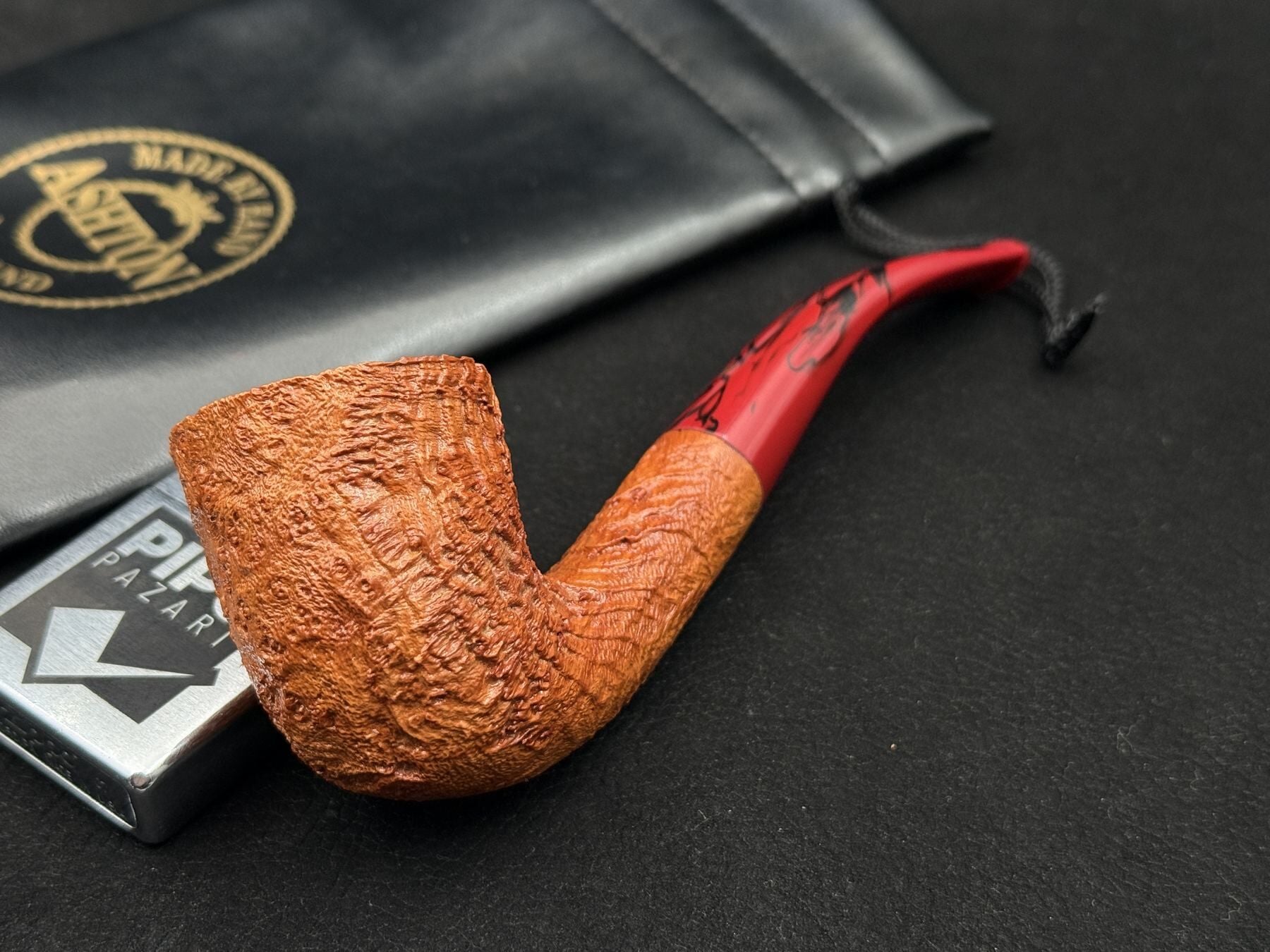 Ashton Oldchurch XX Bent Sandblast Pipo | Klasik İngiliz Stil & Kırmızı Hareli Ağızlık