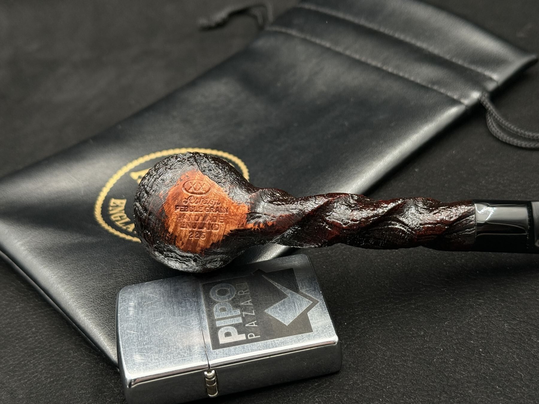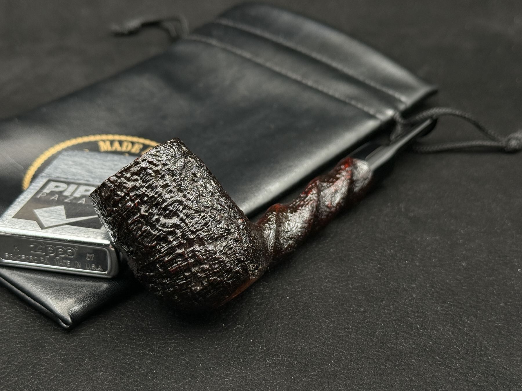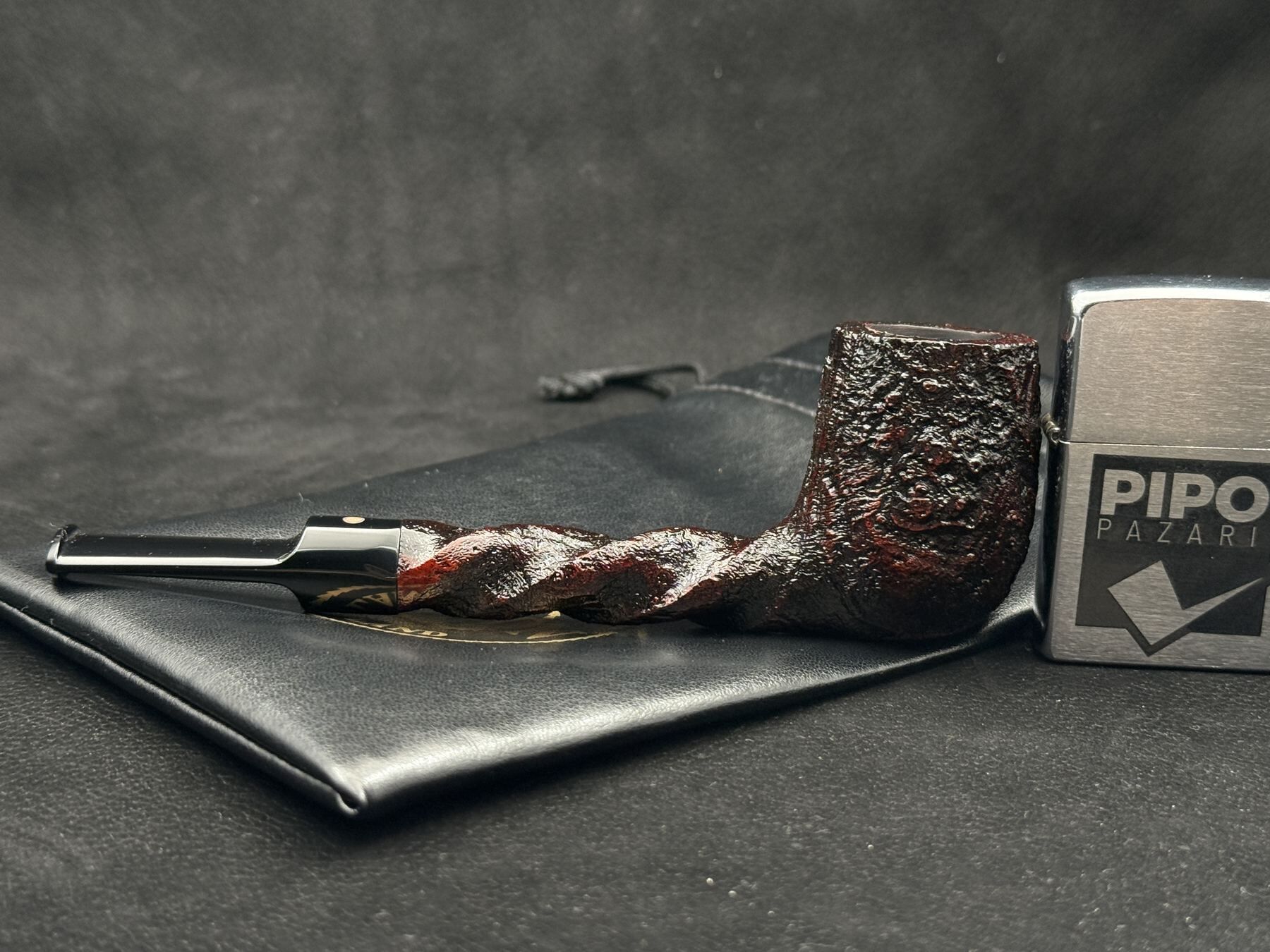 Ashton Pebble Grain XX Spiral Sandblast Pipo, klasik İngiliz işçiliğini modern ve dikkat çekici bir form ile bir araya getiren özel bir modeldir. Spiral olarak şekillendirilmiş gövdesi, pipoya güçlü bir karakter kazandırırken aynı zamanda elde farklı ve dengeli bir tutuş hissi sunar. Bu tasarım, alışılmış pipo formunun dışına çıkarak koleksiyon değeri yüksek bir alternatif oluşturur.