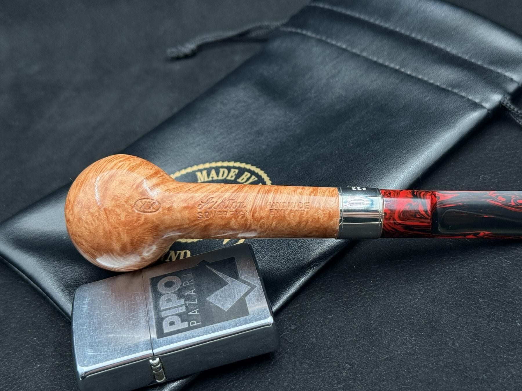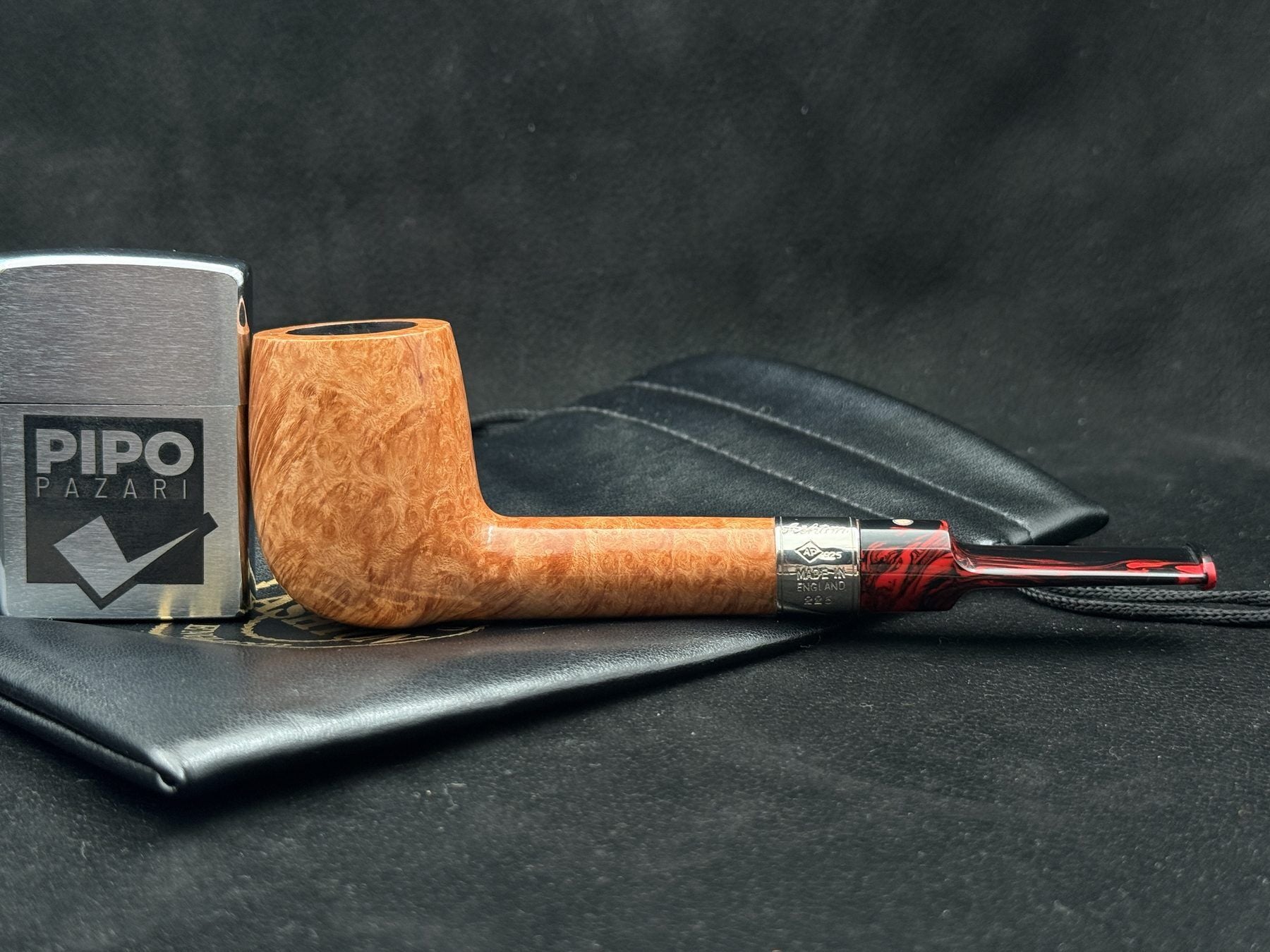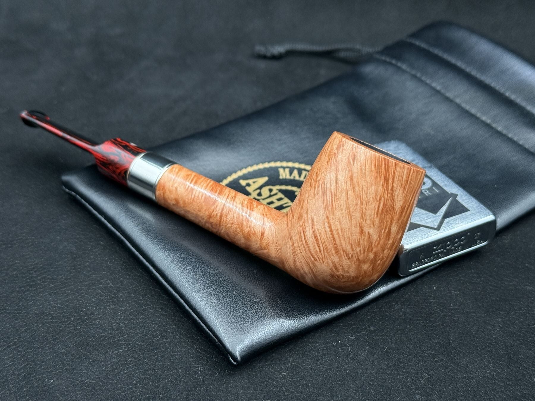 Kırmızı hareli Ashtonit ağızlık, tasarıma sıcak ve dikkat çekici bir dokunuş katarken, dayanıklı yapısıyla uzun ömürlü kullanım sağlar. Bu detay, piponun klasik formuna modern ve karakterli bir ifade kazandırır.