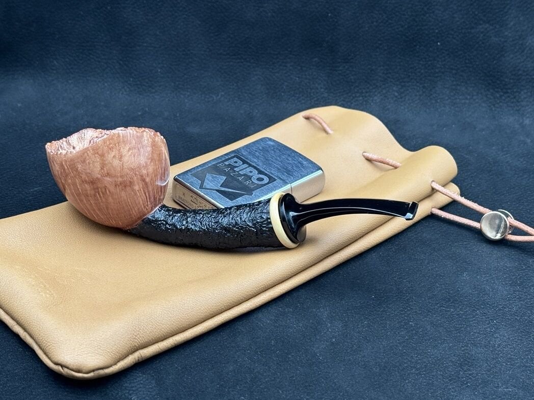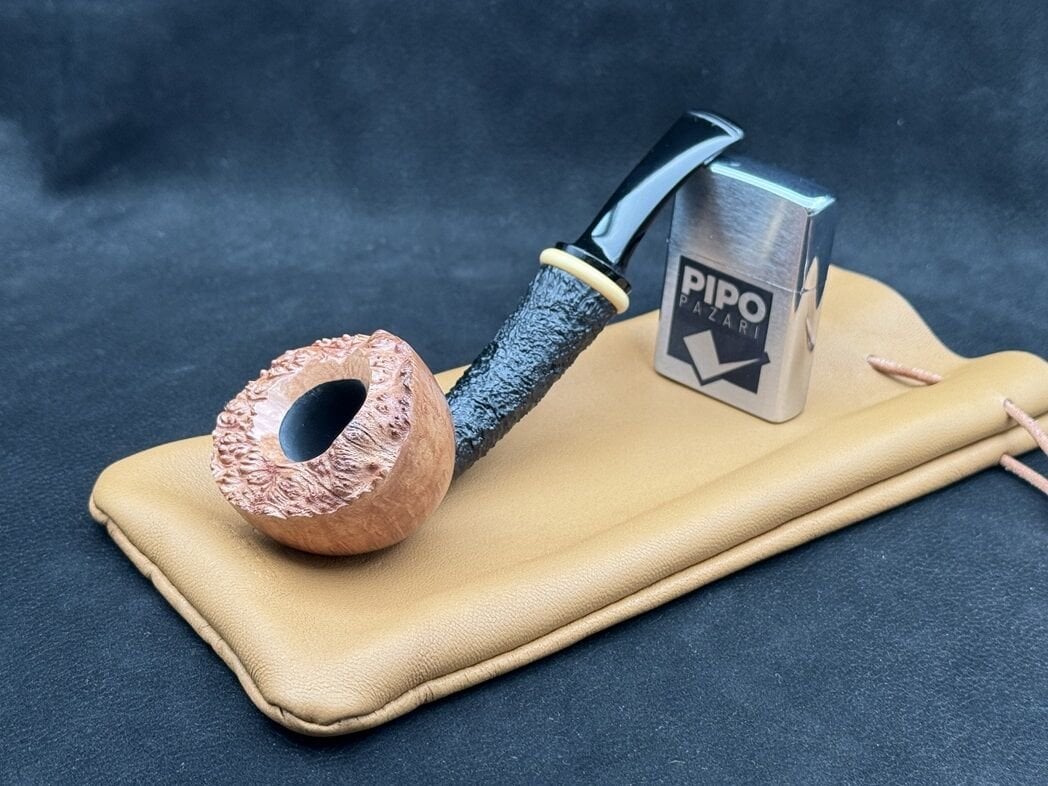 Rustik dokulu shank bölümü, elde doğal bir his bırakırken; cilalı hazne yüzeyi, ışıkla birlikte derinlikli bir görünüm kazanıyor. Bent formu, içim sırasında konforu artırırken; ebonit ağızlık, geleneksel tarzı tamamlayan sağlam ve estetik bir detay olarak öne çıkıyor.