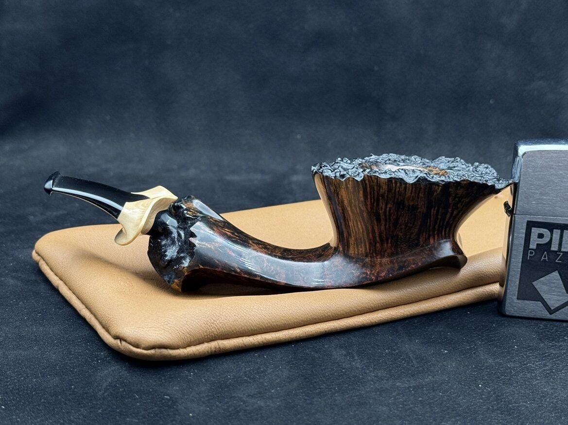 Bu modelin en dikkat çekici yönü, yüzeyindeki derinlikli renk geçişleri ve formunun doğadan ilham alan yapısı. Freehand tasarım, her açıdan farklı bir karakter sergilerken; ebonit ağızlık, geleneksel konforu modern bir çizgiyle tamamlıyor. Filtresiz yapısı, tütünün saf aromasını doğrudan deneyimlemek isteyenler için ideal bir tercih sunuyor.
