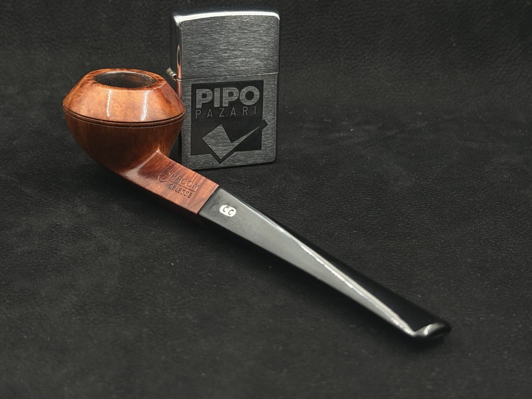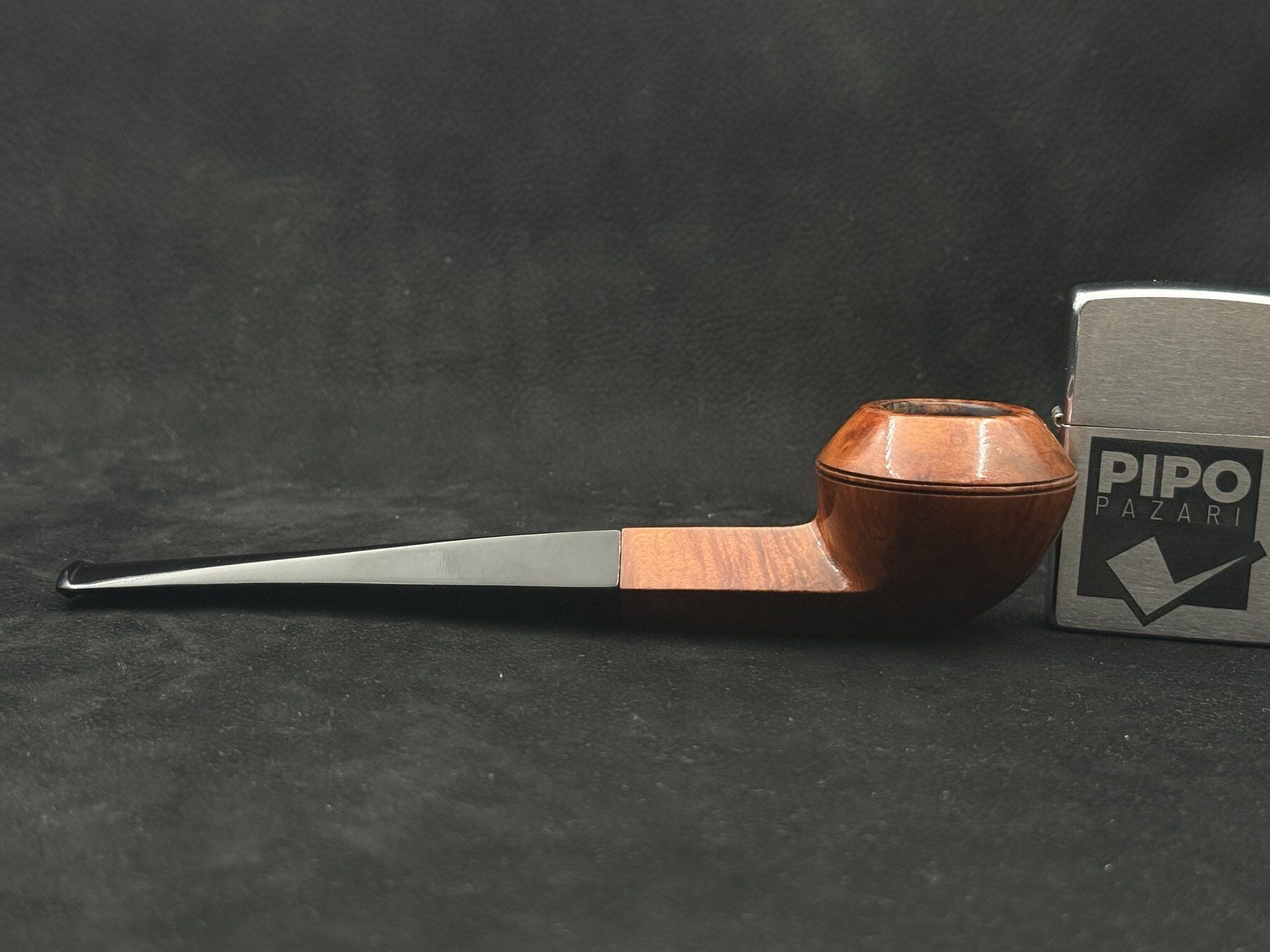 Bulldog form, keskin hatları ve belirgin geçişleri ile klasik pipo dünyasında kendine özgü bir yere sahiptir. Gövde üzerindeki karakteristik hat, modele hem görsel derinlik hem de güçlü bir duruş kazandırır. Chacom Noblesse Bulldog Estate Pipo, ince uzun sap yapısı ile dengeli bir kullanım sunarken, 156,2 mm uzunluğu sayesinde ağızda taşımayı kolaylaştıran konforlu bir yapı ortaya koyar.