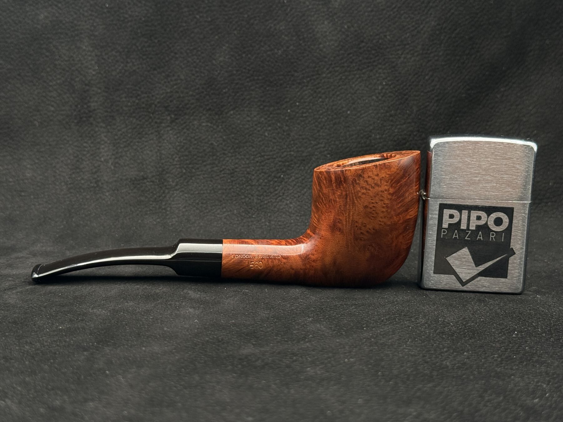 Fleet Street 560 modeli, kompakt ölçüleri ve dengeli gövde oranlarıyla rahat bir Billiard formu sunar. Pürüzsüz briar yüzeyi, ahşabın doğal damar yapısını ön plana çıkarırken, ebonit ağızlık klasik İngiliz hissini tamamlar. Filtresiz yapısı, tütün aromasını doğrudan almak isteyenler için net ve yalın bir içim karakteri sağlar.
