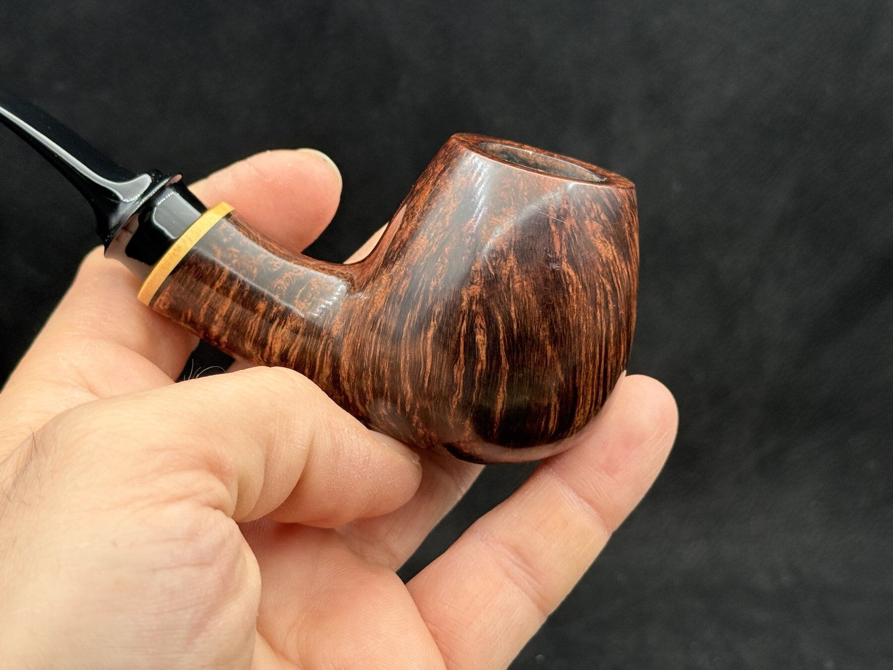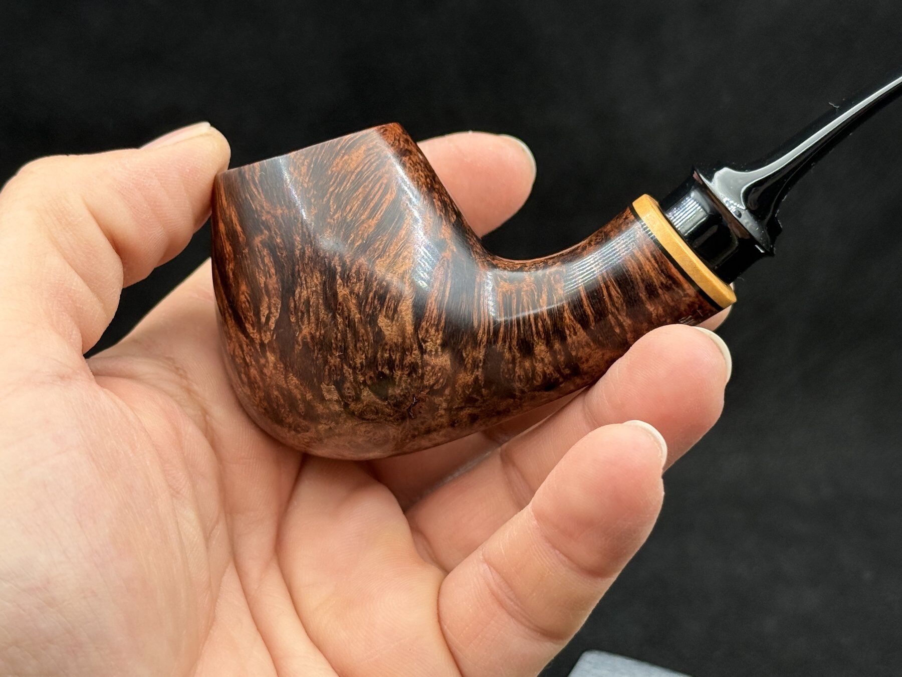 Pürüzsüz (smooth) yüzey bitişi, briarın doğal damarlarını belirgin hale getirerek görsel açıdan zengin ve sıcak bir görünüm sunar. Özellikle bowl üzerindeki yoğun ve akıcı damar yapısı, piponun karakterini belirleyen en önemli unsurlardan biridir. Bu açıdan Georg Boyadjiev Grade B 917 Bent Smooth Estate Pipo, estetik ve doğal briar kalitesini bir arada sunar.
