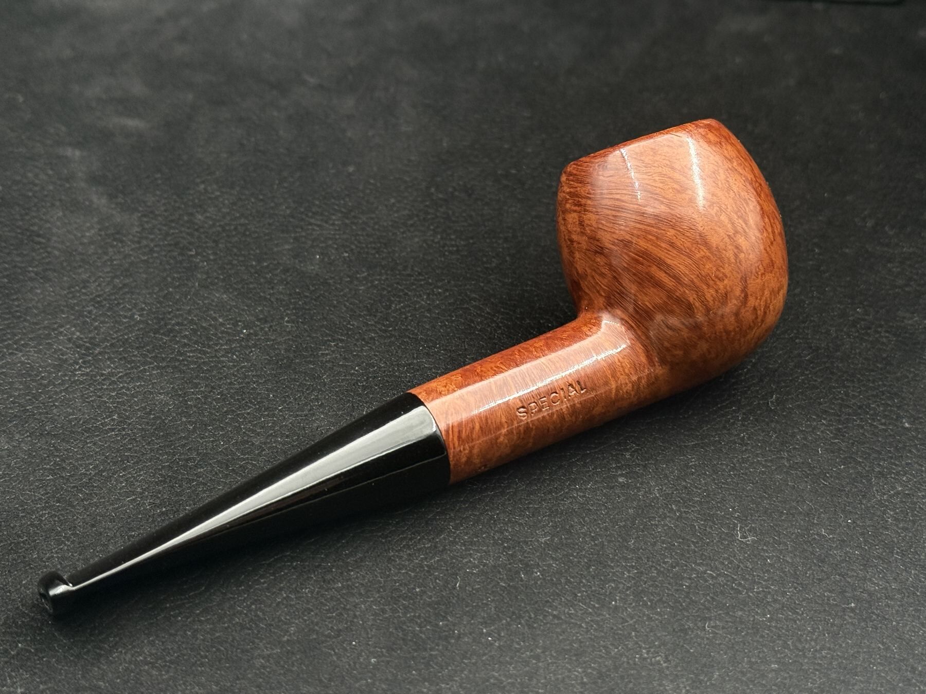 H. Goyut Avenue Delight Special Billard Estate Pipo, Fransız pipo geleneğinin zarif, ölçülü ve rafine çizgisini yansıtan özel bir modeldir. Dengeli ölçüleri, pürüzsüz yüzey bitişi ve klasik form anlayışı ile hem estetik hem de kullanım açısından tatmin edici bir karakter sunar. Fransız pipolarında sıkça görülen sade ama şık yaklaşım, bu modelde de kendini net biçimde hissettirir.
