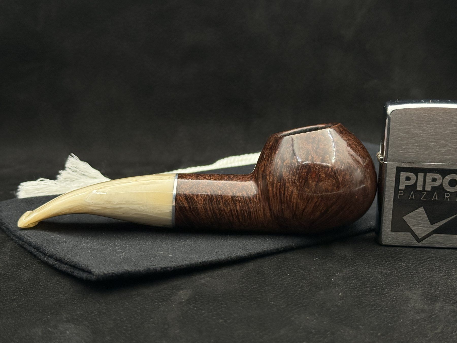 306 ASH Author modelinde shank ve hazne arasındaki geçiş, “gözle izlenen yumuşak bir dirsek” değil, “formun nefes aldığı bir ayraç” gibidir. Smooth briar yüzey, parıltısını “keskin bir spot ışığı” gibi değil, “olgun bir gün ışığı” gibi taşır. Akrilik ağızlık, bu olgun ışığın sonunda doğal bir parlaklıkla bağlanır. Metal bant, shank ile hazne arasında “bir ünlem değil, bir virgül” gibi durur; dikkat çeker ama dramatize etmez. Bu model, briarın doğal karakterini formun içinde abartmadan görmek isteyen, tasarımın ritmini seven içiciler için güçlü bir seçimdir.