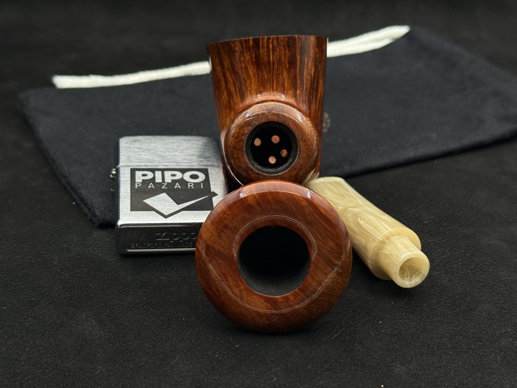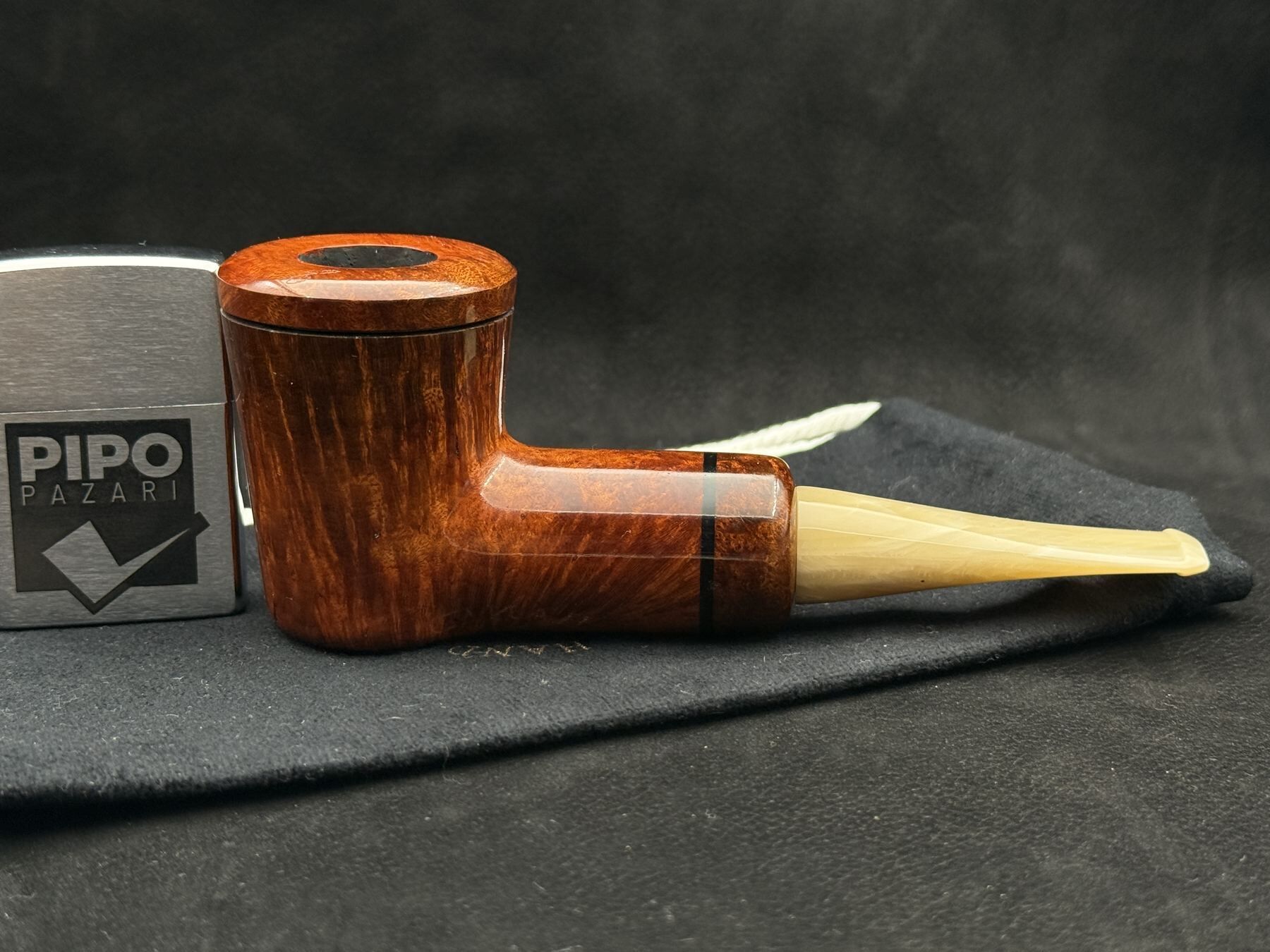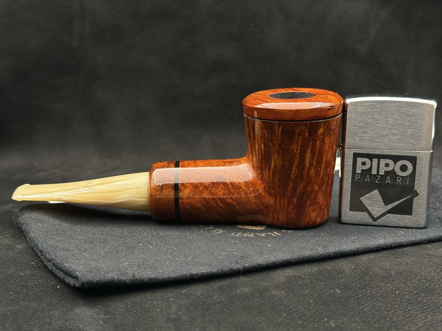 Geniş gövde, küt ve güçlü formuyla avuçta sağlam bir duruş sergiler. Hazne gövdesinin pürüzsüz yüzeyi ise hem estetik hem de dokunsal bir memnuniyet bırakır. Yoğun içimlerde serin, dingin ve konforlu bir tercih.