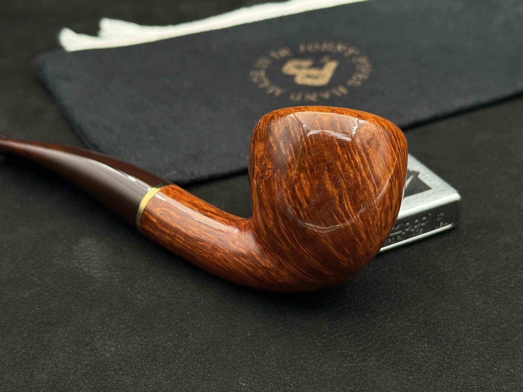 252 Cumberland Smooth Bent modeli, briarın doğal sıcaklığını kıvrımlı bent formuyla birleştirerek içimde rahatlığı merkeze alıyor. Gövdedeki damar hareketleri oldukça karakterli ve canlı; bitiriş yüzeyindeki parlaklık ise zanaatkârlığın titizliğini yansıtıyor. Koyu kahve ağızlık ile briar arasındaki altın tonlu halka, tasarıma sofistike bir vurgu katıyor. Samimi, çekici ve kullanışlı… Günlük kullanımda bile özel hissettiren bir parça.