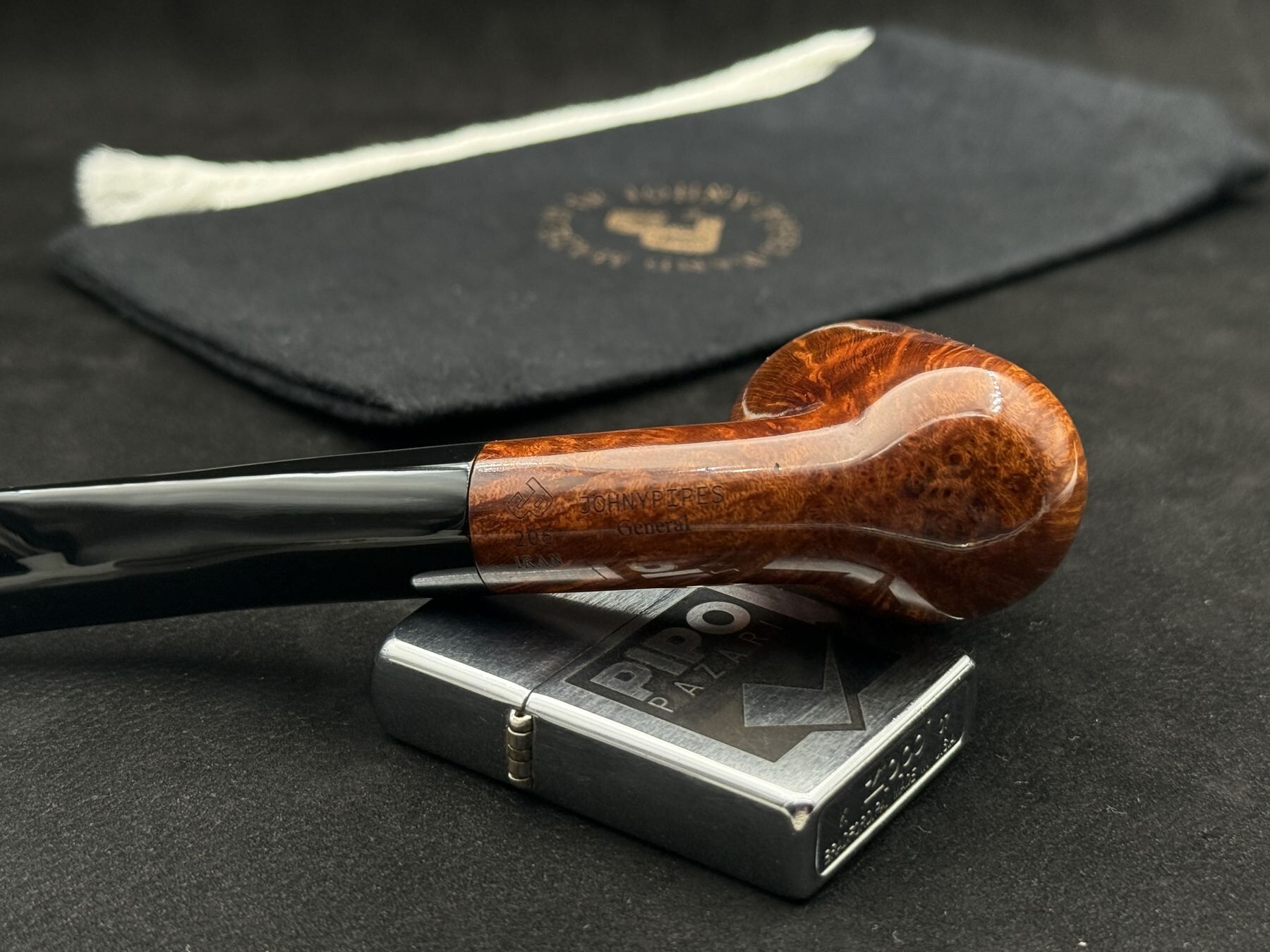 General 206 Smooth Bent modeli, güçlü briar damarlarını iç haznenin sağlam yapısıyla birleştiriyor. Gövdeden ağızlığa doğru uzanan eğim çizgisi, içim sürecinde doğal bir akış sağlar. Elle tutuşta konforlu, uzun içimlerde ise yormayan bir yapıya sahip.