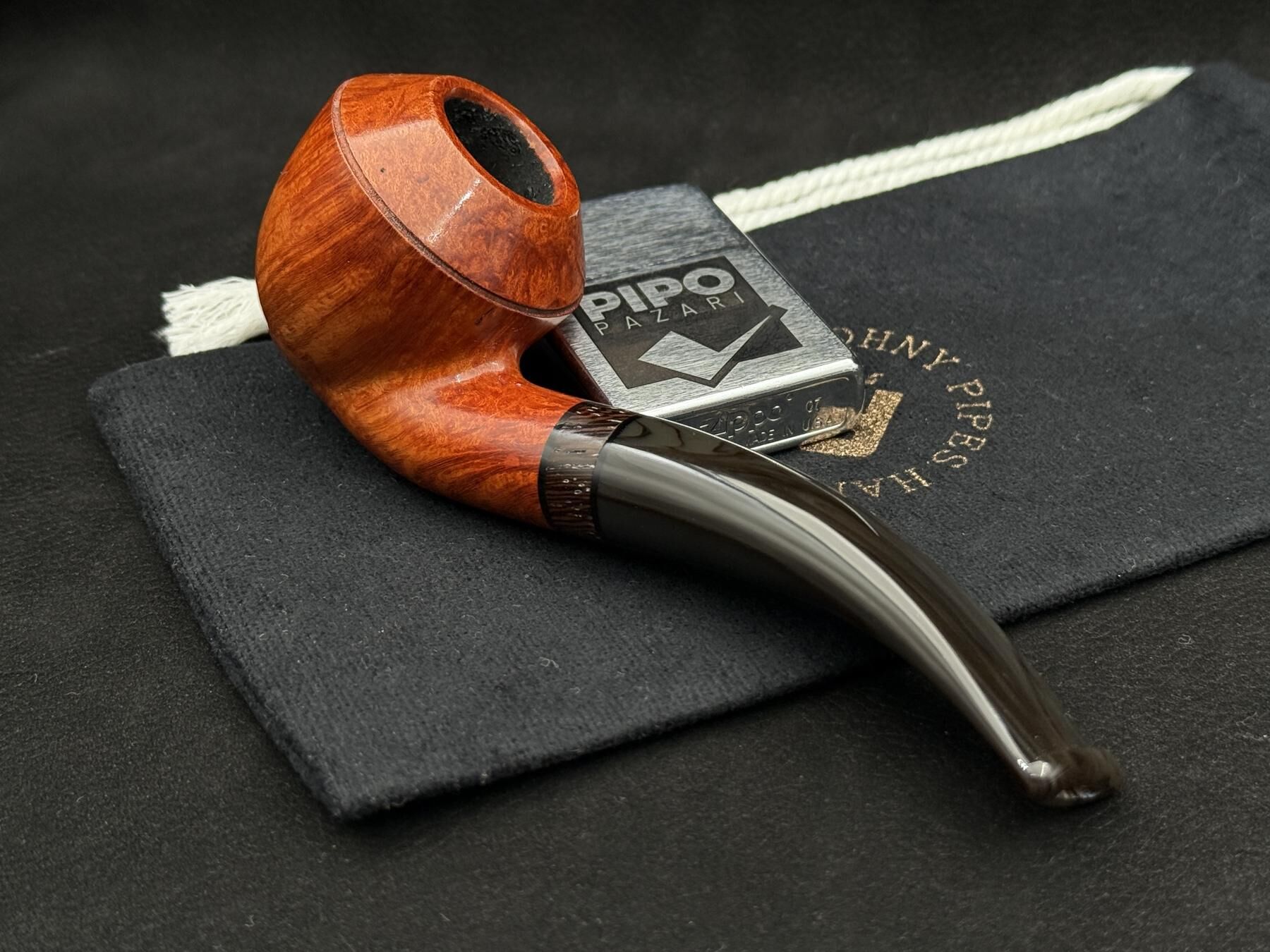 Johny Pipes’ın Pallas Cat serisi, özgün detaylara ve güçlü form karakterine sahip pipoları ile bilinir. Usta, tasarımlarında briarın doğal formunu korurken onu modern dokunuşlarla yeniden şekillendirir. Bu sayede hem güncel hem de zamansız bir estetik elde edilir.