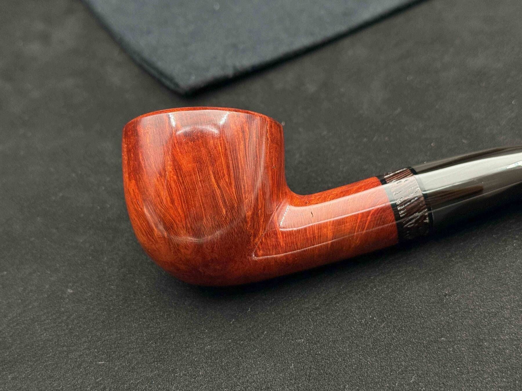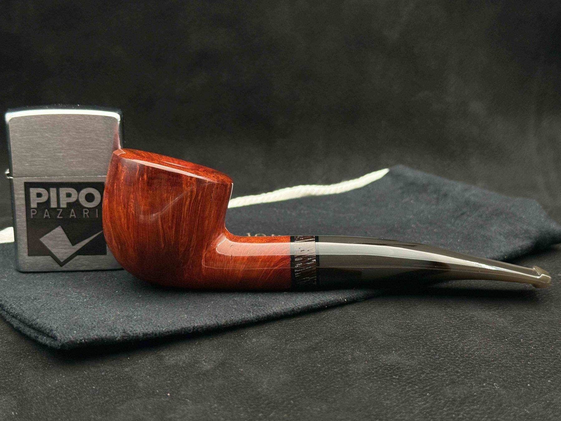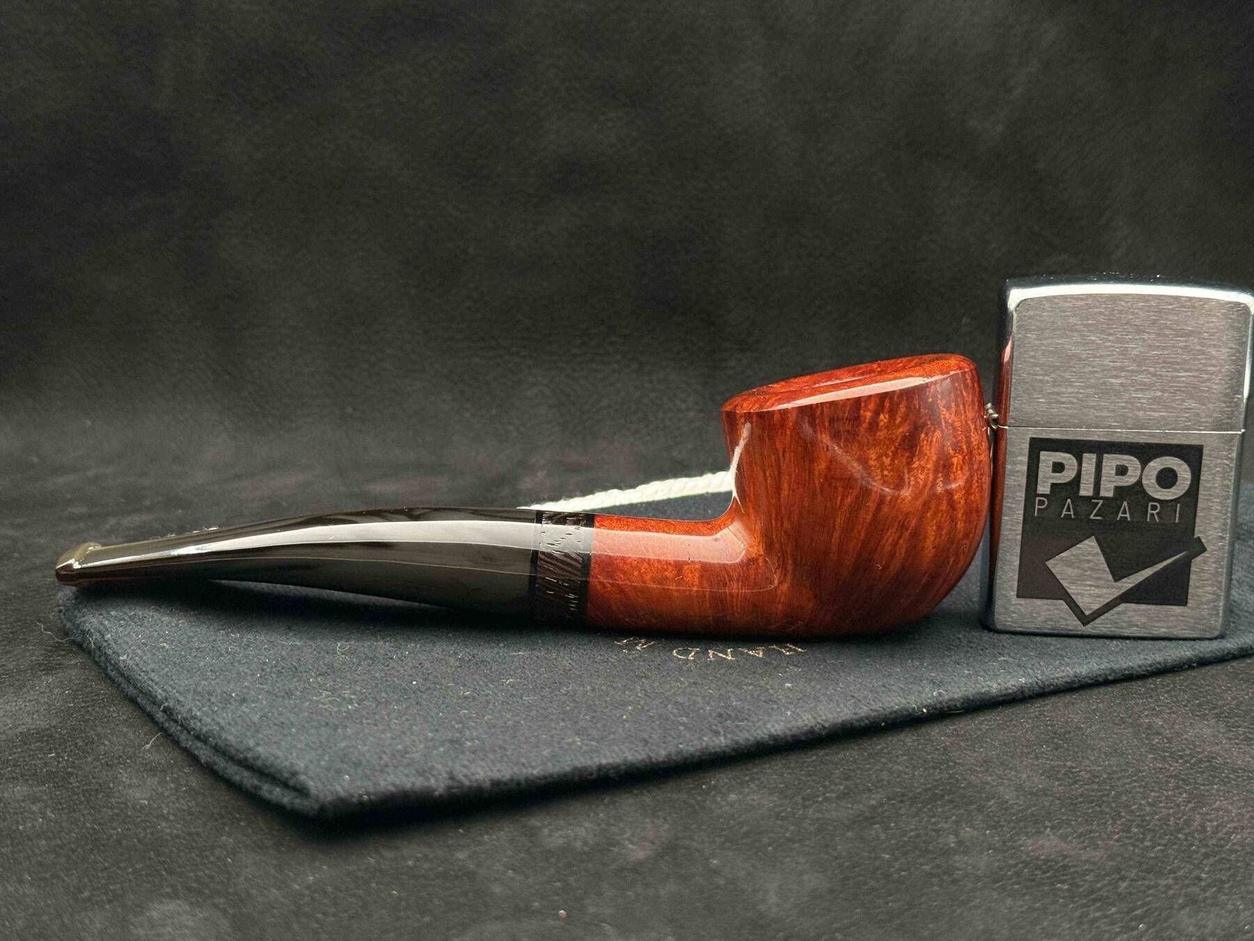 245 Pallas Cat Smooth Bent modeli, yuvarlak hatlarının doğal akışıyla zarif fakat güçlü bir duruş sergiliyor. Briarın sıcak kahverengi tonları canlı damar hareketleriyle birleşerek göze oldukça hoş gelen bir derinlik sunuyor. Hafif eğimli bent formu ise hem ağızda konfor hem de elde dengeli kavrayış sağlıyor. Koyu kahverengi akrilik ağızlık ile briar gövde arasındaki geçiş, modern bir uyumla tamamlanmış. Şıklığı detaylarda arayanlar için seçkin bir alternatif.