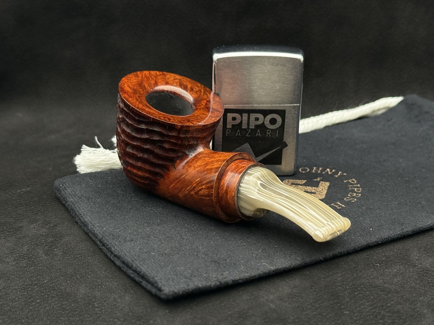 JohnnyPipes, İran’ın pipo yapım geleneğini finish’i bir kimlik unsuru olarak işleyen bir atölye felsefesiyle sürdürür. Usta Johnny, yüzeyi bir efekt gösterisi değil, briar’ın içten konuştuğu bir cümle gibi kurgular. Reverse Calabash formu, duman dolaşımını anlatmak yerine hissettiren bir mimari sunar; 402 ise bu formun en doğal doku yorumlarından biridir. JohnnyPipes üretim dilinde her pipo, tasarım ailesinin içinde bile bireysel bir iç ses taşır.