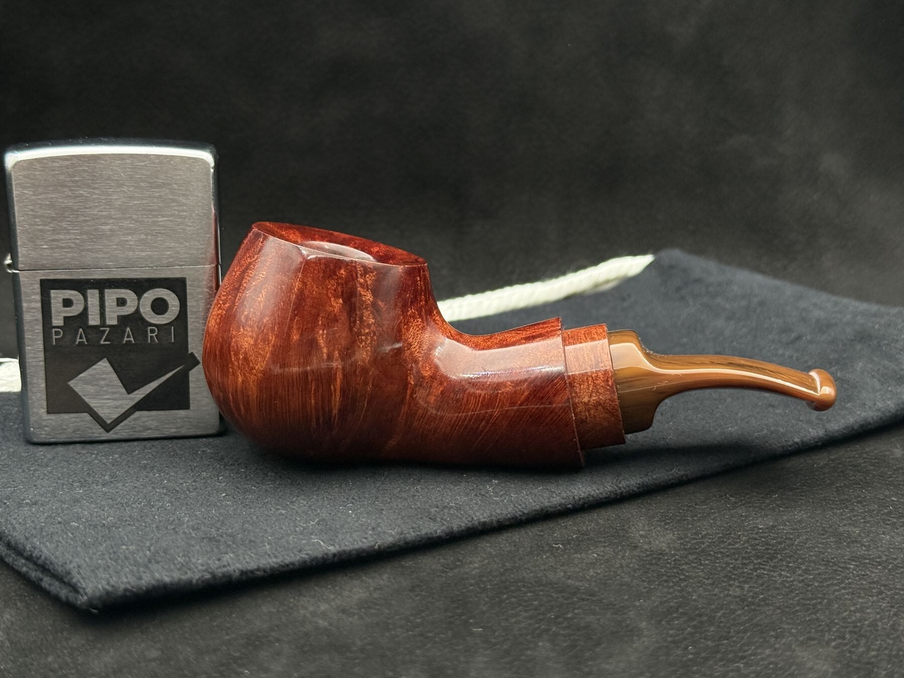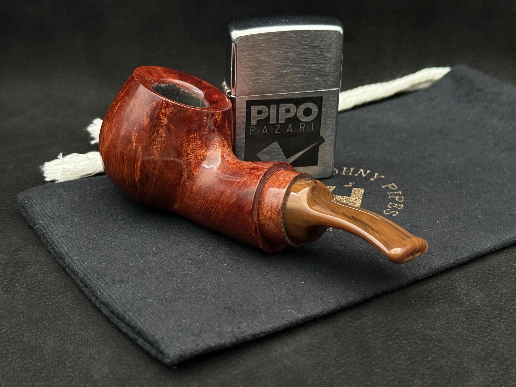 Bu piponun pürüzsüz yüzeyi, briar’ın doğal tonlarını baskılamayan ama onları da sahneye çıkarmayan bir dengeyle taşır. Bowl’un küresel gövdesi, shank’e uzanan hatta görsel bir kırılma barındırmaz; akış hissi verir. Ahşap yüzük, formu bölen değil, onu dengeleyen bir çerçeve unsurudur. Akrilik stem’in koyu şeffaflığı, piponun temas hissini modern ama nötr bir eşlikçi olarak tamamlar. 403, JohnnyPipes’in kavislerde gizlenen sakin karakter anlayışını taşıyan modellerdendir.