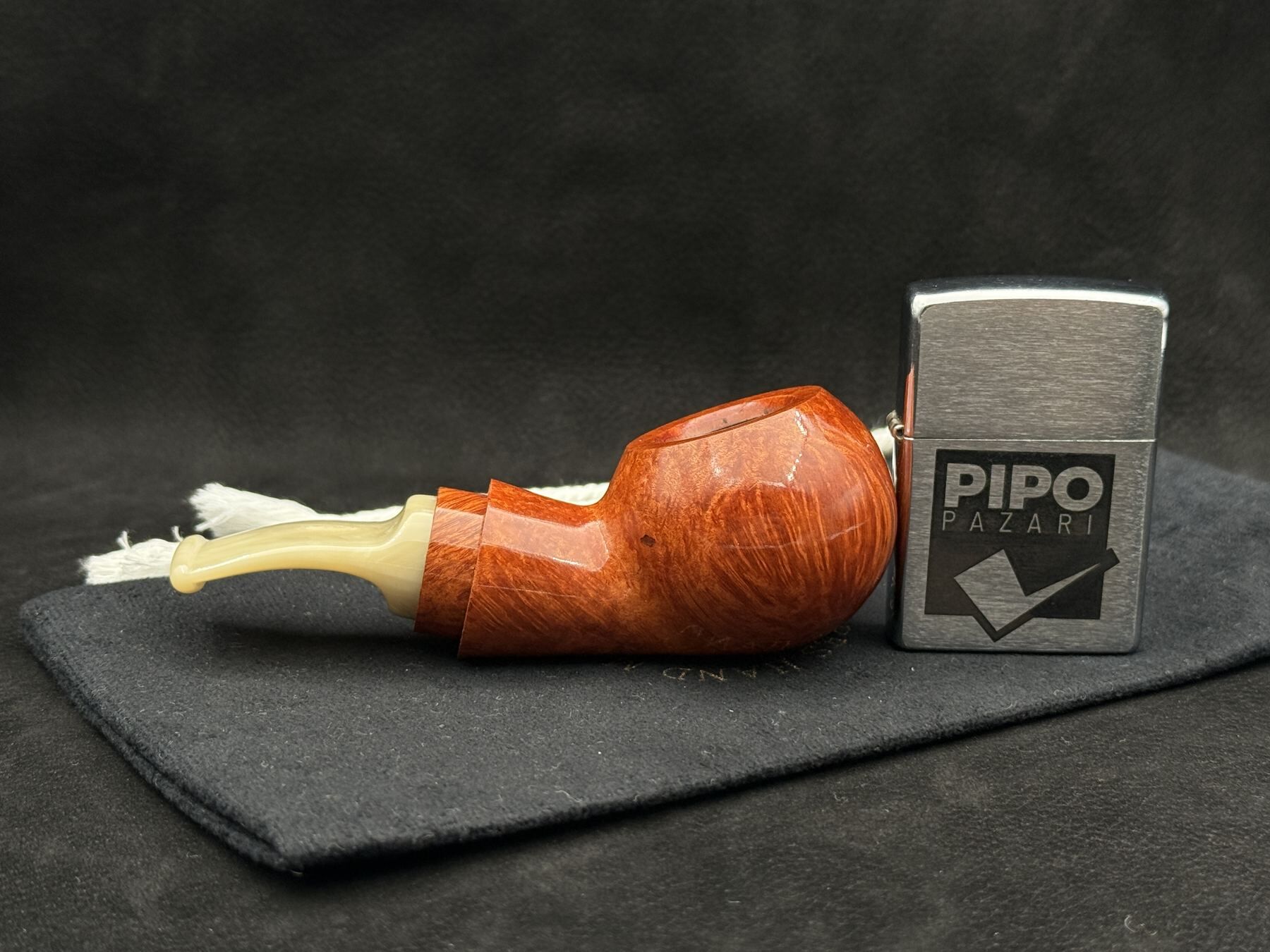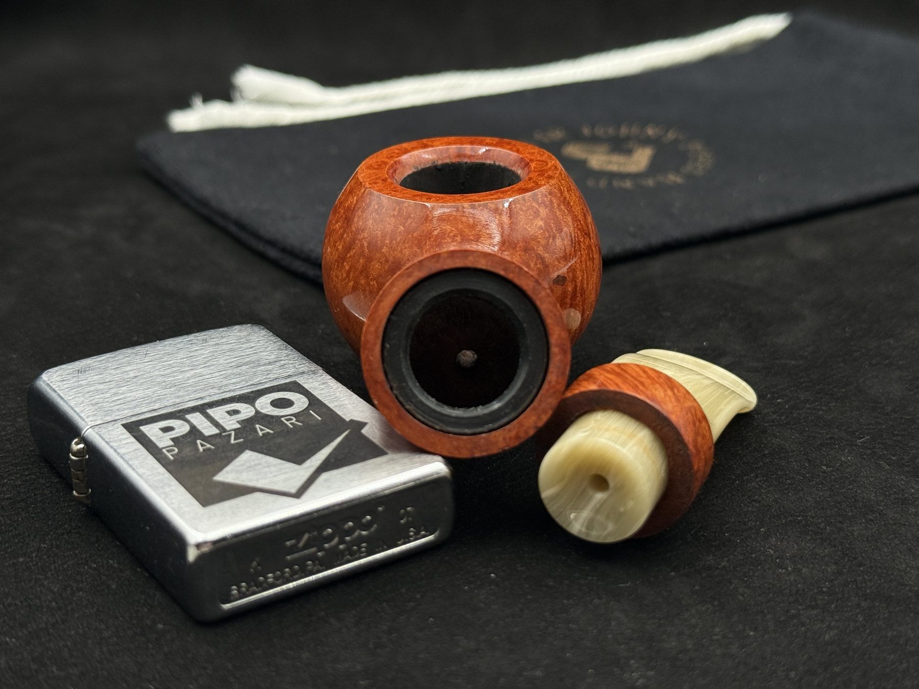Bu pipo, pürüzsüz finish’iyle hacmi bir vitrin parlaklığı olarak değil, sessiz bir görsel yoğunluk alanı olarak taşır. Bowl’un küresel hacmi, shank’e uzanan hatta akıcı bir temas dengesi kurar. Ahşap yüzük, formu bölen değil; onu tamamlayan bir eşik unsurudur. Tonlar güçlü değil, kararlıdır; renk sadece yön verir, anlatıyı yönetmez. Akrilik stem’in koyu siyah şeffaflığı, piponun temas hissini nötr ama modern bir eşlikçi gibi tamamlar. 405, JohnnyPipes’in “sessiz hacimde derinleşen form” anlayışını taşıyan modellerdendir.