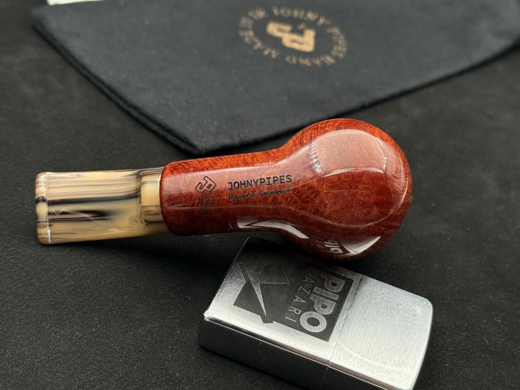 JohnnyPipes ustası, aynı model ailesine ait pipolarda bile aynılığı değil akrabalığı hedefler; form ve finish, her pipoda yeni bir denkleme girer. Bu atölye, briar’ı bir kahraman gibi değil, karakterin ortağı gibi işler. Reverse Calabash hattı, markanın form sürekliliğini keskin köşeler yerine, içten akan eğrilerle kurduğu mimari anlayışın bir parçasıdır. 422’nin bu yorumu, JohnnyPipes’in istikrarı tekrar değil, kimlik olarak ele aldığını gösterir.