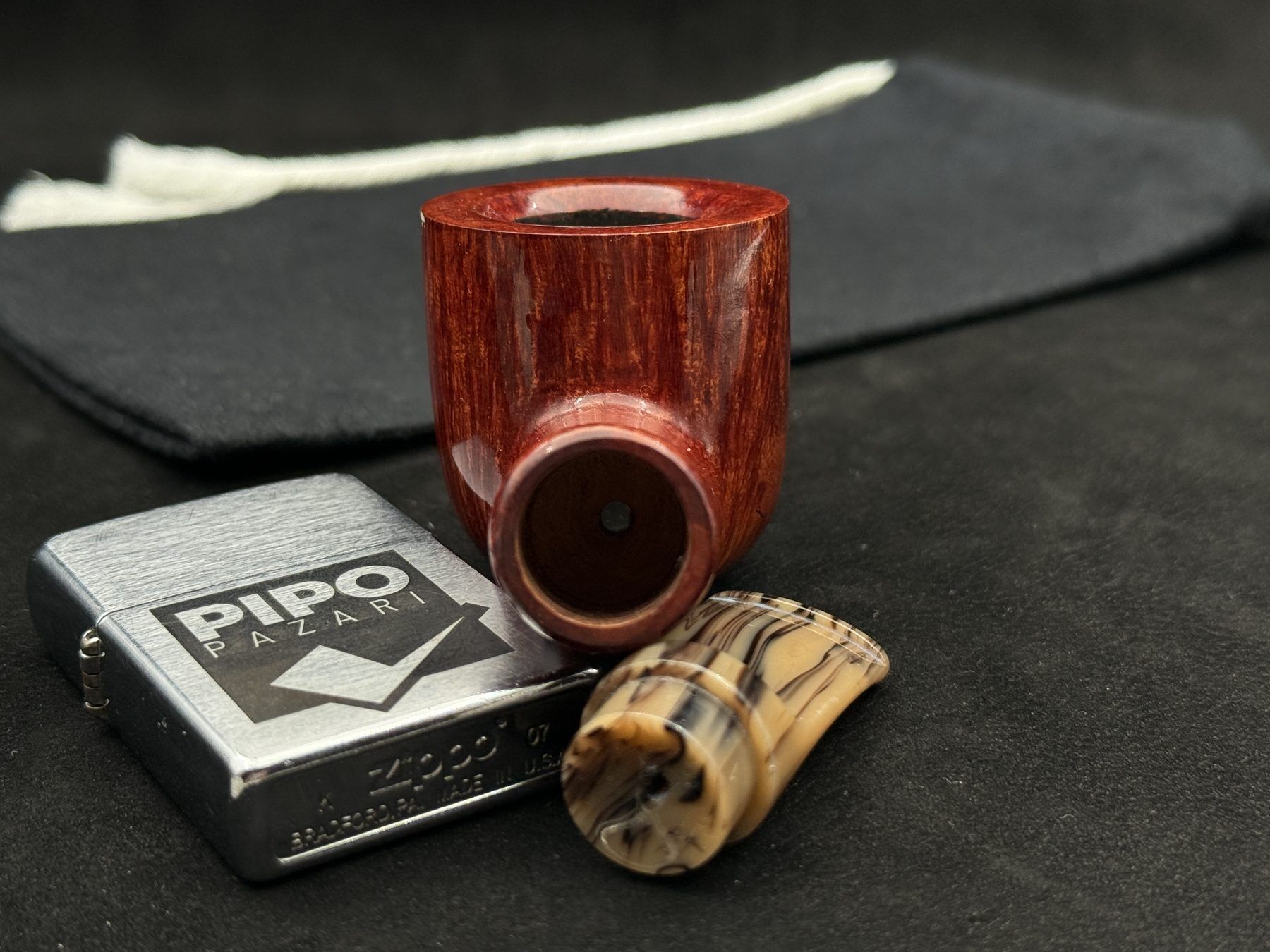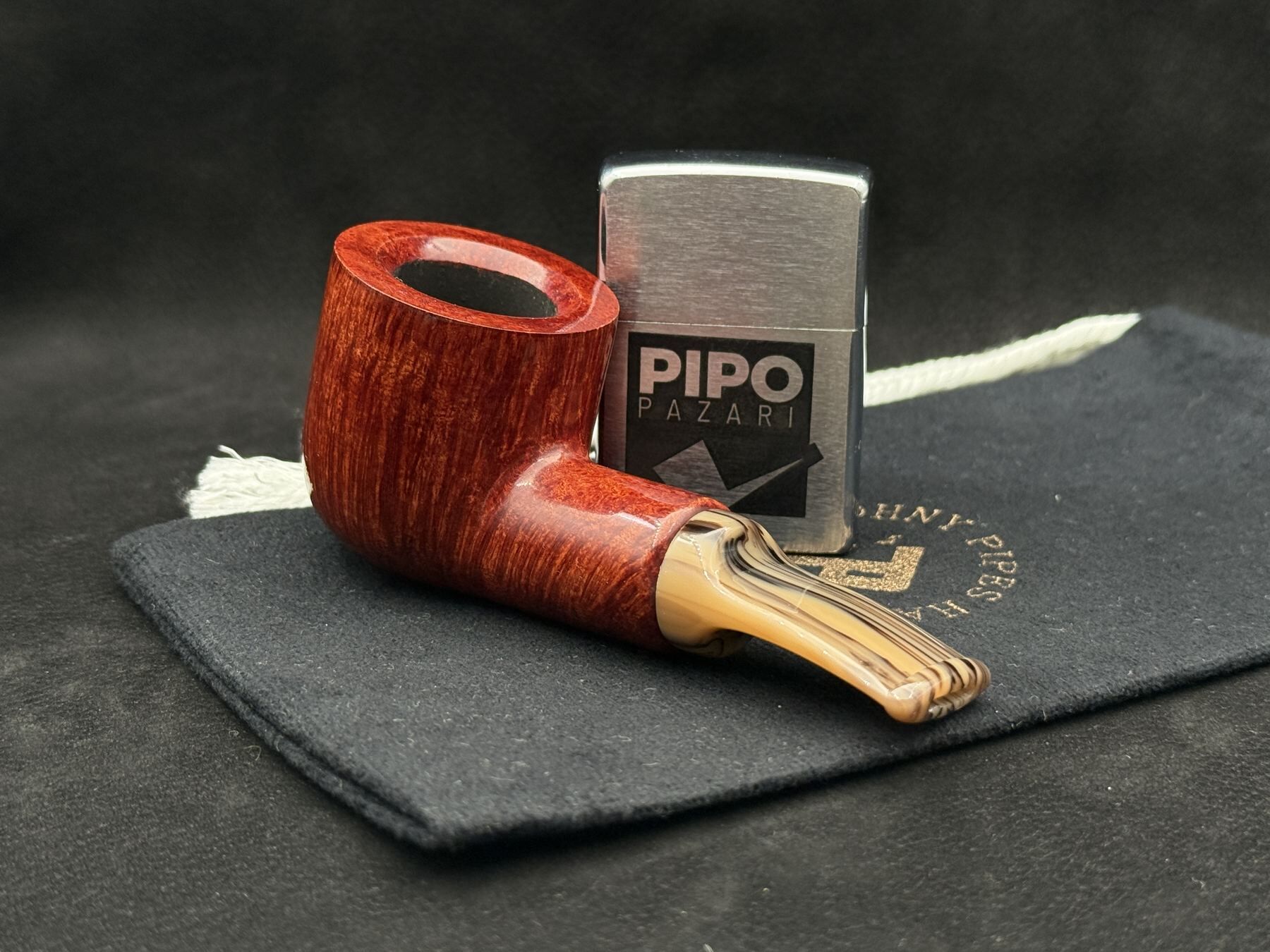 Bu pipoda yüzeyin dili, bowl’un içe dönen eğrisini bir tasarım ekseni gibi takip eder. Cila, bir vitrin parlaklığı değil, bir karakter belirteci gibi çalışır ve formun bütünlüğünü korur. Shank ve stem arasındaki geçiş, görsel bir kopma yaratmaz; aksine, dumanın gövdedeki hareketini hatırlatan akılcı bir süreklilik sunar. Akrilik stem, tasarımın çağdaş ortağıdır ve piponun genel temasını soğuk bir kontrastla değil, dengeli bir netlikle tamamlar. Bu model, JohnnyPipes’in 422 hattındaki en akılcı ama tekrar etmeyen yorumlardan biridir.
