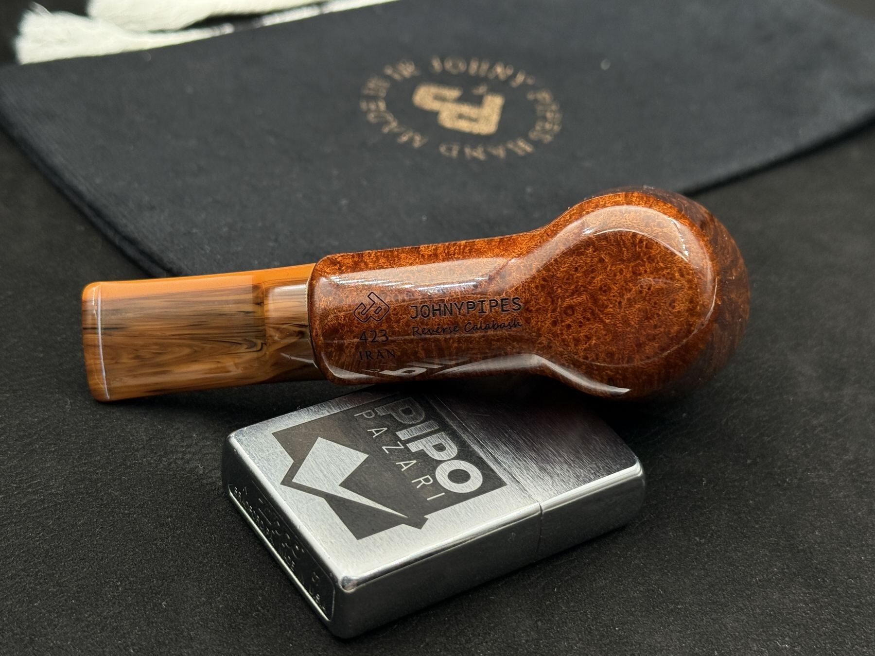 JohnnyPipes, İran’ın briar kültürünü finish’in içine işleyen bir tasarım anlayışıyla üretim yapar. Ustanın form dili, içiciyi izleyici değil, akışın ortağı yapmayı hedefler. Reverse Calabash mimarisi, JohnnyPipes’in dumanın dolaşımını anlatmak yerine hissettiren tasarım kimliğinin önemli bir parçasıdır. 423, markanın finish’i kimliğin taşıyıcı unsuru olarak kullandığı örneklerden biridir.