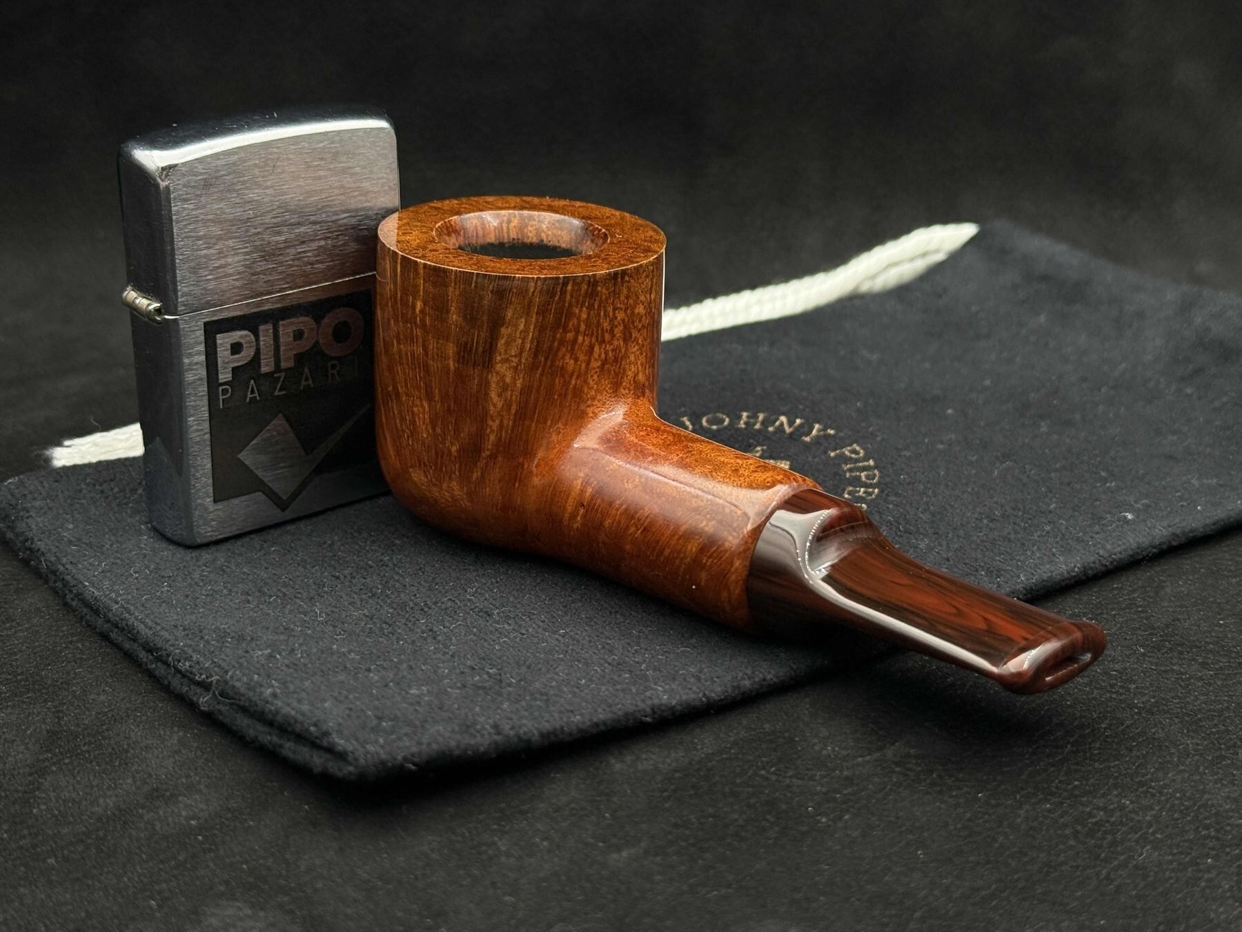 Bu pipo, ipeksi bir görsel denge noktasında çalışır; yüzeyin akışı bowl’un kıvrımlarını takip eden kesintisiz bir ritim sunar. Cila, piponun karakterini ışıkta kibirle değil, olgun bir parlaklık disipliniyle gösterir. Stem ve shank arasındaki geçiş, grafik bir kopma değil, tasarımın temasını sürdüren bir temas ortağı gibi çalışır. Akrilik stem, nostaljiye yaslanmadan, formun çağdaş ortağı gibi eşlik eder. 424, JohnnyPipes’in ipeksi denge anlayışını en sakin ama en karakterli taşıyan yorumlardan biridir.