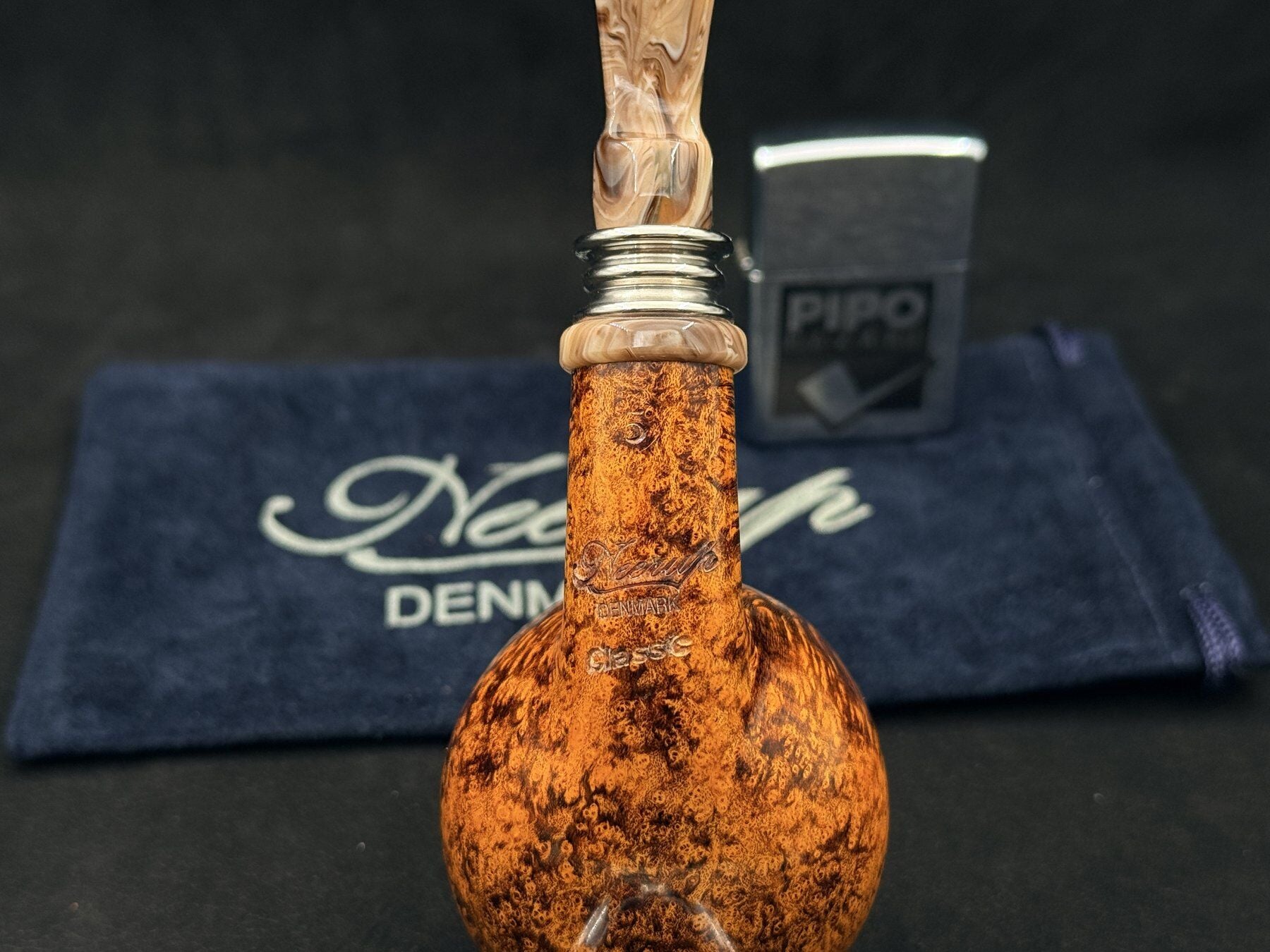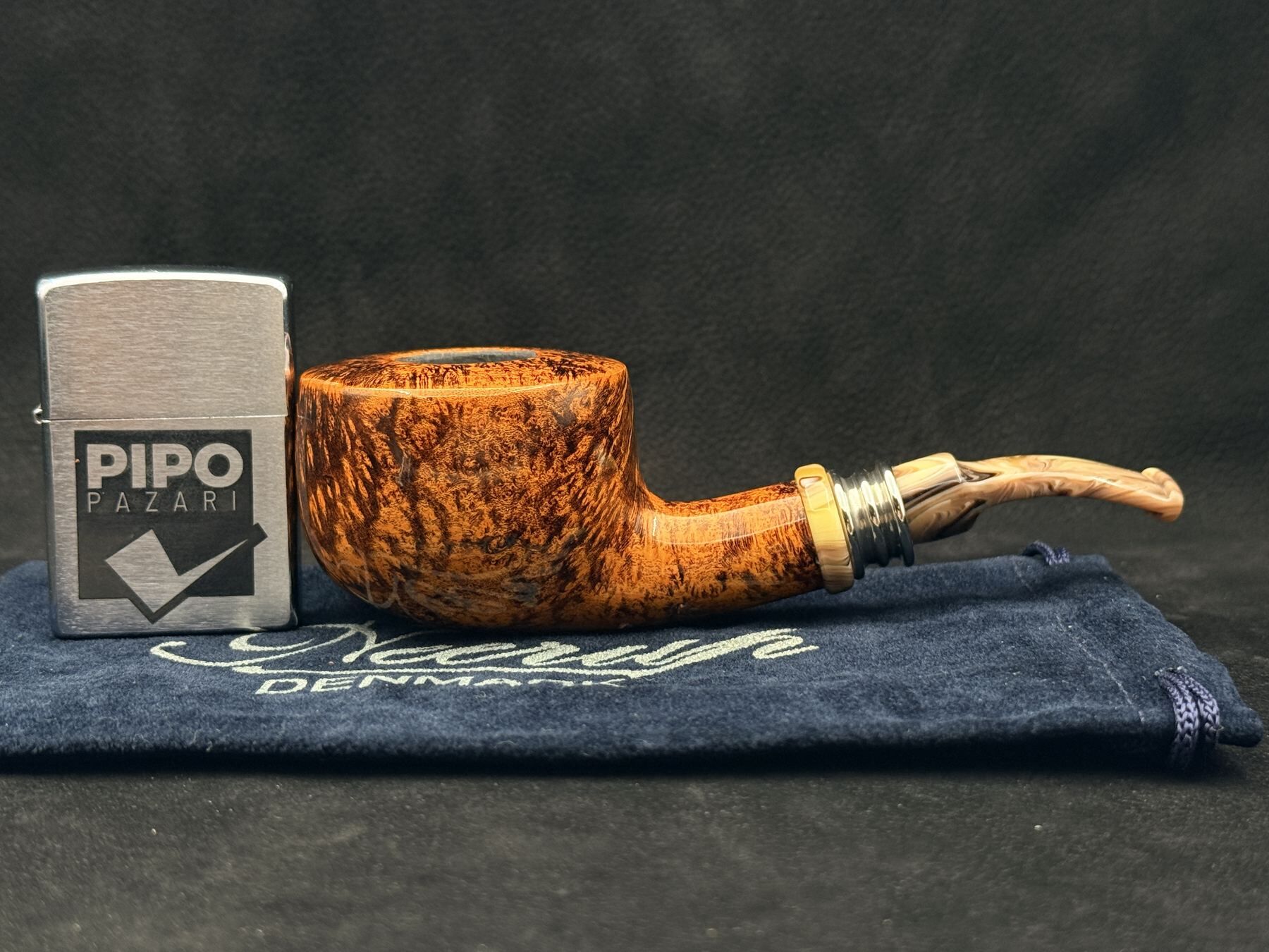 Krem tonlarındaki akrilik ağızlık, gövdenin sıcak renkleriyle uyumlu bir bütünlük sağlayarak piponun genel estetiğini yumuşatıyor. Bu özel akrilik yapı tamamen Peder Jeppesen’e ait olup, farklı markalarda rastlanmayan özgün bir malzeme karakteri sunar. Metal ve akrilik halka detaylarıyla zenginleşen geçiş bölgesi, tasarımın el işçiliği vurgusunu güçlendiriyor. 9mm filtre uyumu ve 76,9 gramlık dengeli ağırlığı ile uzun içimlerde stabil bir performans sunan bu model, geniş hazne sevenler için güçlü ve rafine bir alternatif olarak öne çıkıyor. Bu Neerup Classic GR5 Pot Bent Pipo modeli, estetik ve kullanım dengesini başarılı şekilde bir araya getirir. Neerup Classic GR5 Pot Bent Pipo, güçlü karakteri ve rafine duruşuyla dikkat çeken özel bir seçenektir.