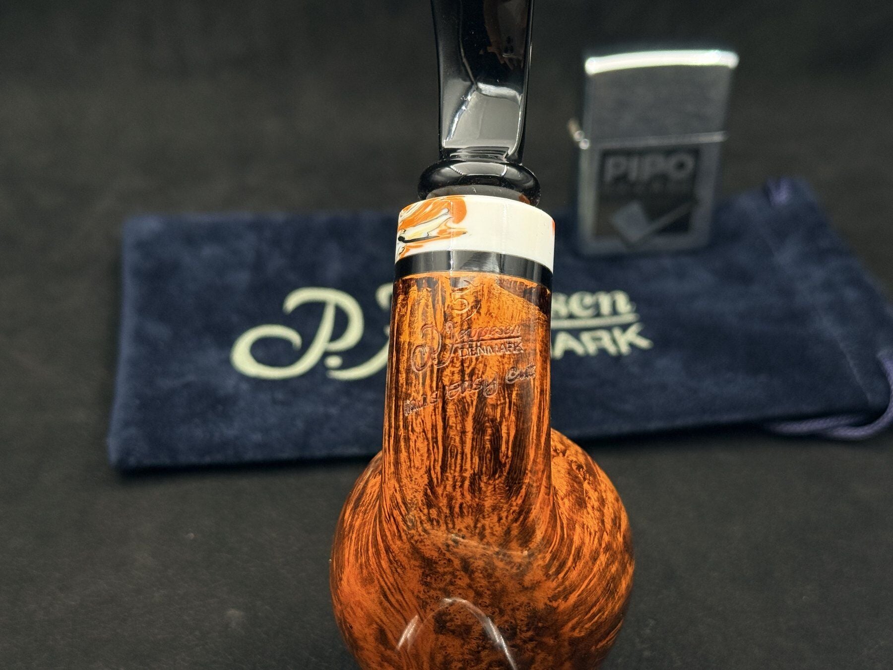 Peder Jeppesen Ida Easy Cut GR5 Bent Pipo, IDA serisinin tamamen handmade üretim karakterini dolgun ve güçlü bir bent form üzerinden sunan dikkat çekici bir modeldir. Bent yapının sağladığı akıcı hatlar, pipoya hem estetik bir dinamizm hem de kullanım sırasında konfor kazandırırken, briar yüzeydeki yoğun ve akıcı damar yapısı oldukça zengin bir görsel karakter oluşturur. Pürüzsüz bitiş sayesinde bu doğal yapı parlatılarak abartılmadan, sade ve rafine bir şekilde ortaya çıkar. Hazne çevresinde yoğunlaşan kuş gözü dokular ile gövde boyunca uzanan çizgisel damarlar, pipoya farklı açılardan derinlik kazandırır. Easy Cut hazne yapısı ise kullanım ve temizlik açısından önemli bir pratiklik sağlar. Peder Jeppesen Ida Easy Cut GR5 Bent Pipo, güçlü formu ve doğal yüzeyiyle estetik ve kullanım uyumunu başarılı şekilde bir araya getirir. Peder Jeppesen Ida Easy Cut GR5 Bent Pipo, briar’ın karakterini sade ama etkileyici bir şekilde yansıtan özel bir modeldir.