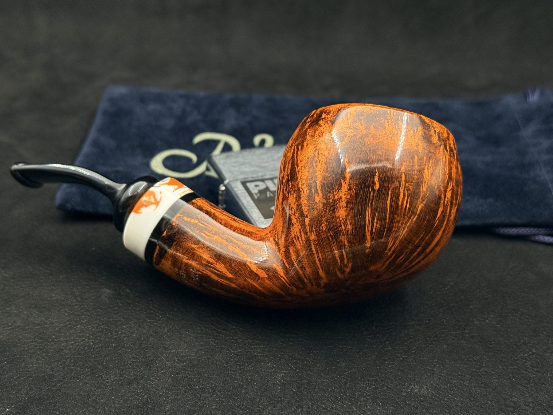 Bu modelde öne çıkan en belirgin detaylardan biri, gövde ile ağızlık arasında kullanılan beyaz ton ağırlıklı hareli akrilik yüzüktür. Açık zemin üzerinde dağılan doğal desen yapısı, briar yüzey ile güçlü bir kontrast oluşturarak pipoya ferah ve dikkat çekici bir karakter kazandırır. Siyah akrilik ağızlık ile tamamlanan bu geçiş, tasarımın bütünlüğünü dengelerken kullanılan malzeme Peder Jeppesen’e özgü özel üretim yapısıyla fark yaratır. 90 gramlık dolgun ağırlığı sayesinde elde güven veren bir hissiyat sunan bu model, filtresiz yapısı ile tütünün aromasını daha doğrudan hissetmek isteyen kullanıcılar için ideal bir içim sağlar. Bu Peder Jeppesen Ida Easy Cut GR5 Bent Pipo modeli, estetik ve kullanım dengesini güçlü şekilde yansıtır. Peder Jeppesen Ida Easy Cut GR5 Bent Pipo, özgün detayları ve karakterli yapısıyla öne çıkan özel bir seçenektir.