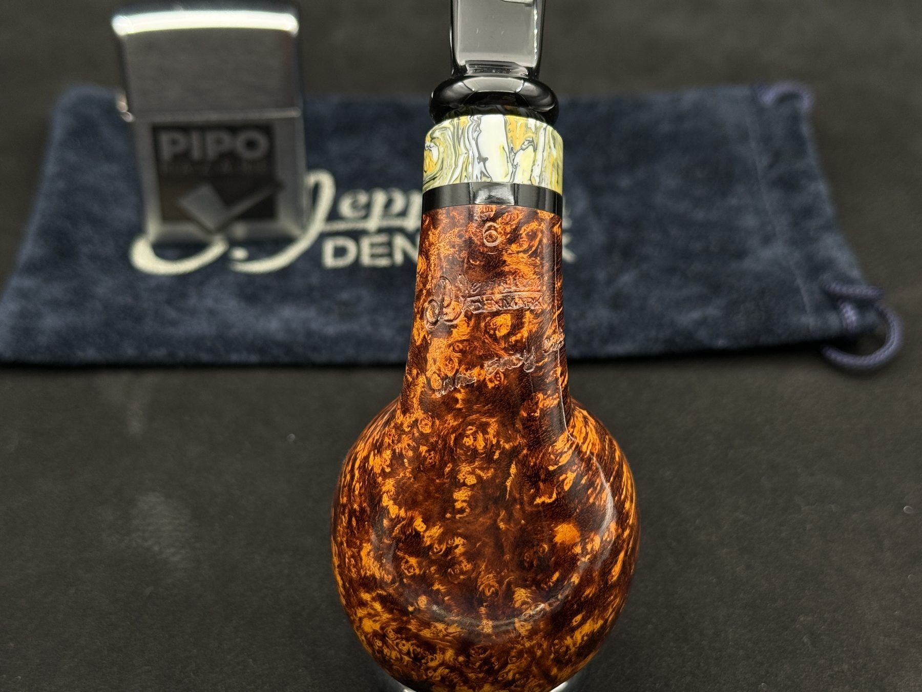 El işçiliğinin getirdiği özgür formlarla Danimarka pipo geleneğini yeniden yorumlayan Peder Jeppesen, IDA serisinde ustalığının en canlı ifadesini ortaya koyuyor. Briar’ın damar yapısını derin bir berraklıkla öne çıkaran özel yüzey işlemi, pipoya kalıcı bir parlaklık kazandırırken; renk ve dokudaki uyum, gözle görülür bir estetik bütünlük yaratıyor. Her bir IDA modeli, Jeppesen’in hem sanatkâr hem de içim deneyimini önemseyen yaklaşımının seçkin bir yansıması…