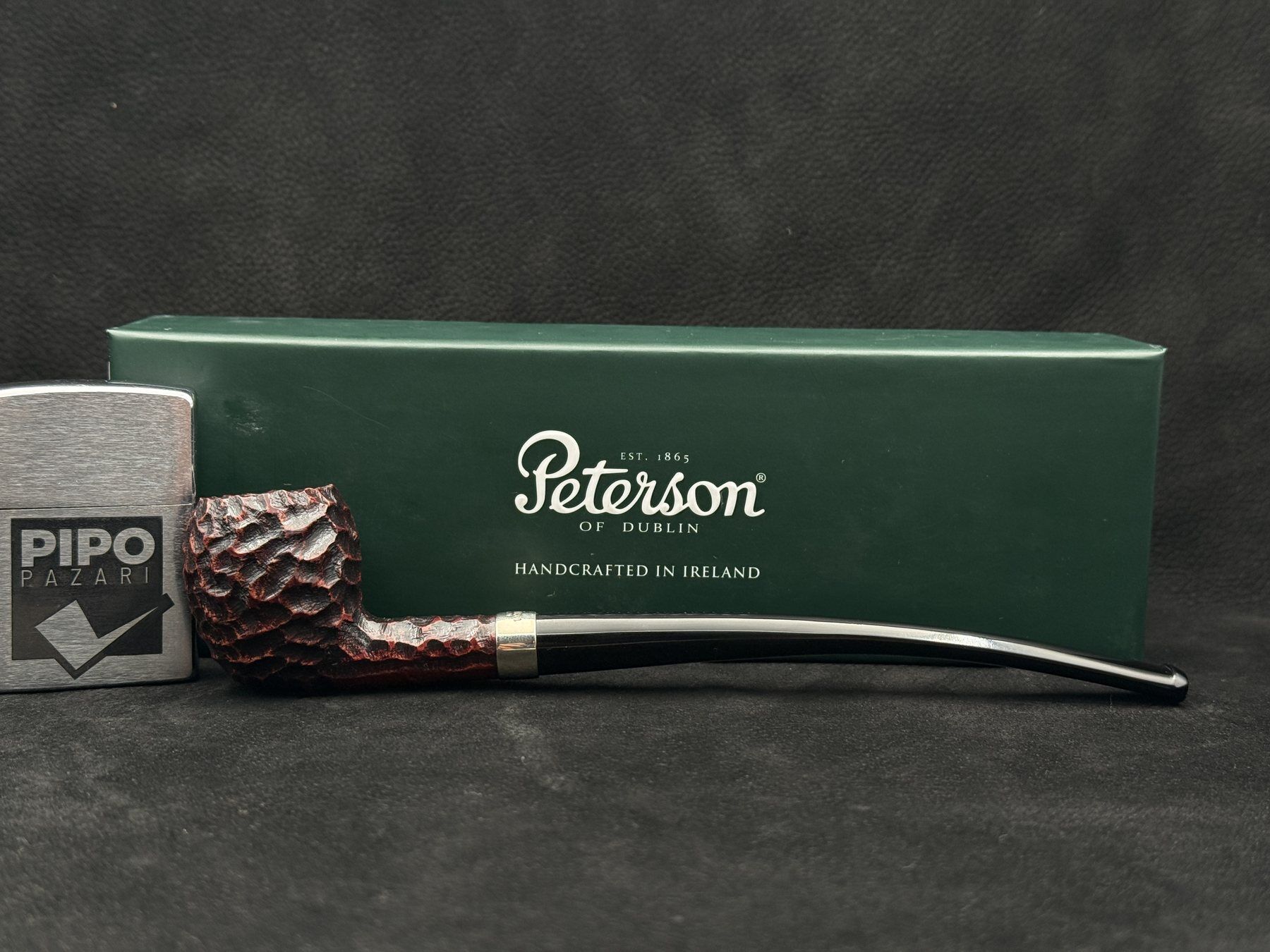 Filtresiz tasarım, hava akışını doğrudan ve açık bırakmayı tercih eden içicilere hitap ederken, Peterson’un geleneksel mühendislik anlayışı içim stabilitesini koruyor. Uzun ebonit ağızlık, hem ısıyı mesafeyle dengeleyen bir yapı sunuyor hem de estetik olarak formu daha zarif gösteriyor. Shank üzerindeki metal bilezik detayı, markanın klasik imzasını taşırken rustik gövde ile şık bir kontrast oluşturuyor. Yeni ve kutulu olarak sunulan bu model, hafif, zarif ve karakterli bir İrlanda rustiği arayanlar için güçlü bir alternatif niteliğinde.