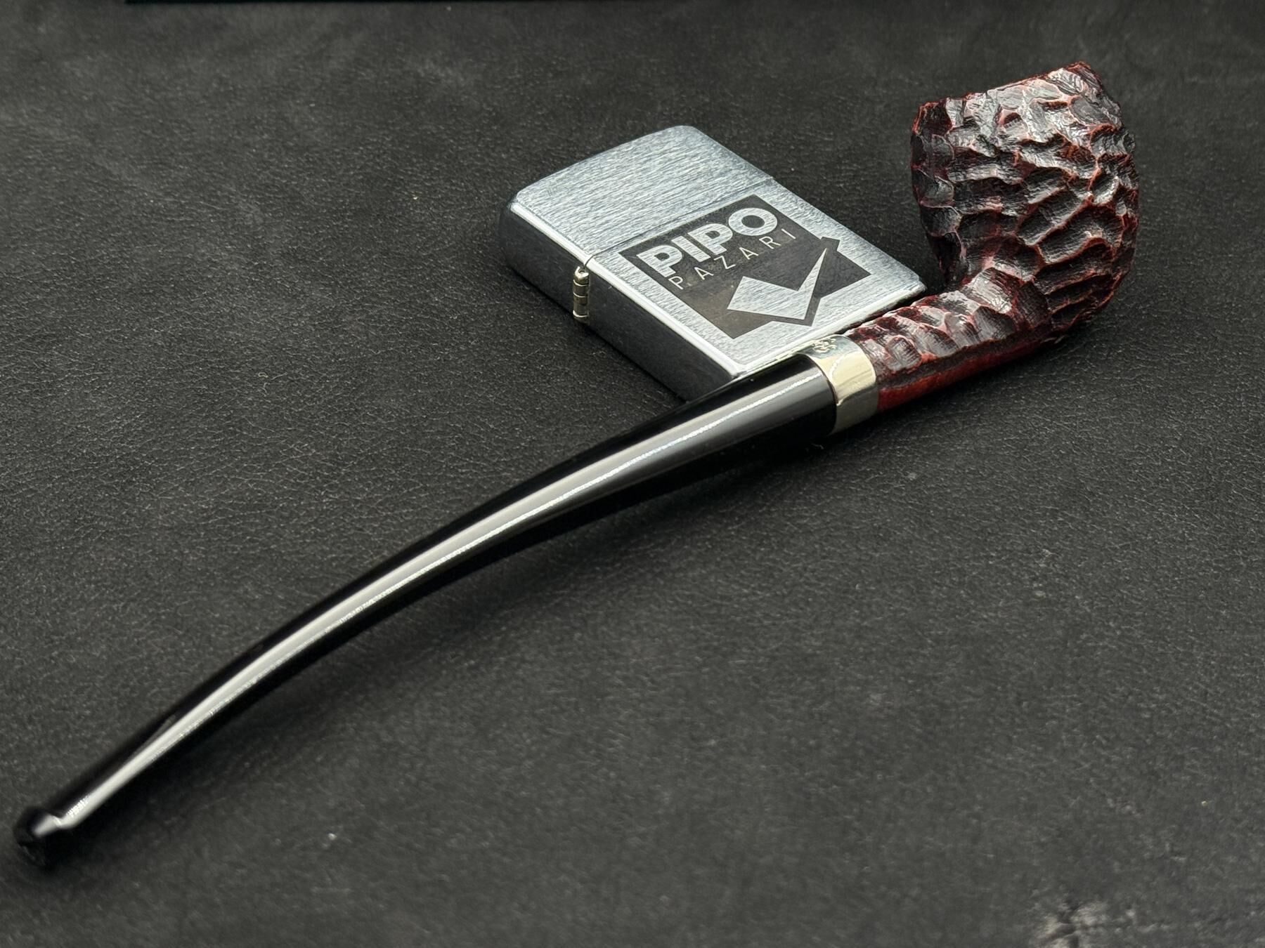 Peterson’un Dublin formu, markanın klasik İrlanda çizgisini en net yansıtan siluetlerden biridir. Yukarı doğru hafif genişleyen bowl yapısı ve dengeli omuz geçişleri, hem görsel akış hem de içim karakteri açısından kendine özgü bir duruş sunar. Bu modelde rustik yüzey uygulaması, briarın doğal yapısını derin ve düzensiz bir dokuyla ortaya çıkarırken, koyu kırmızı ton geçişleri formun hacmini daha belirgin hale getiriyor. 23,5 gramlık ağırlığı ise dikkat çekici derecede hafif; özellikle uzun ağızlıkla birleştiğinde neredeyse ağızda yok hissi veren bir denge sunuyor. Bu hafiflik, onu günlük kullanım için son derece konforlu bir seçenek haline getiriyor.