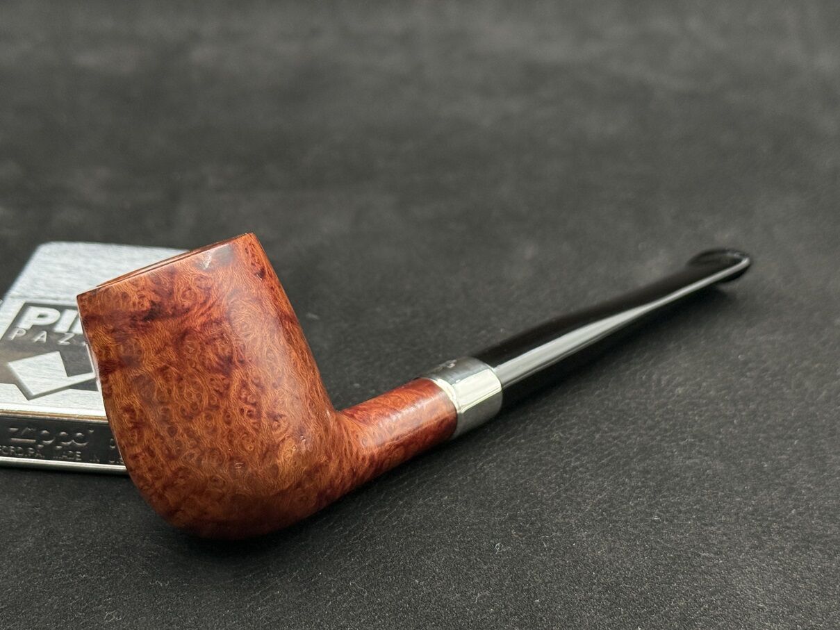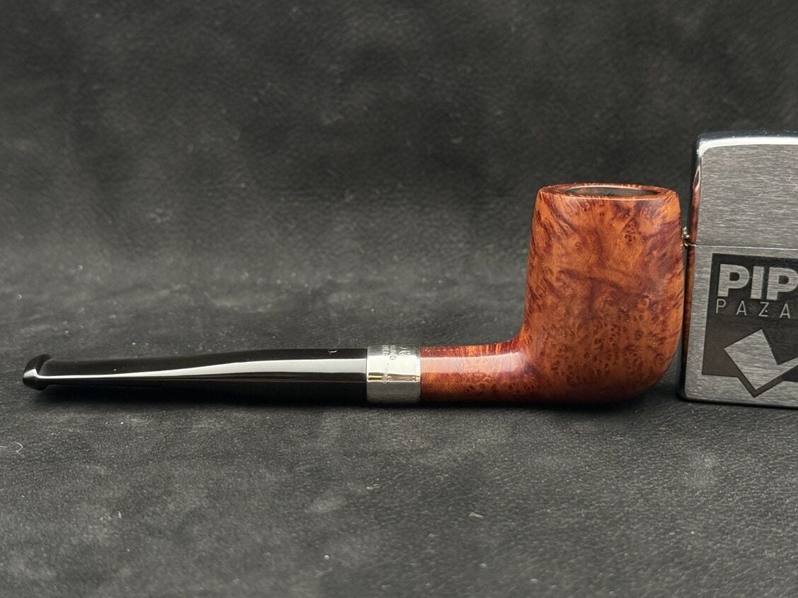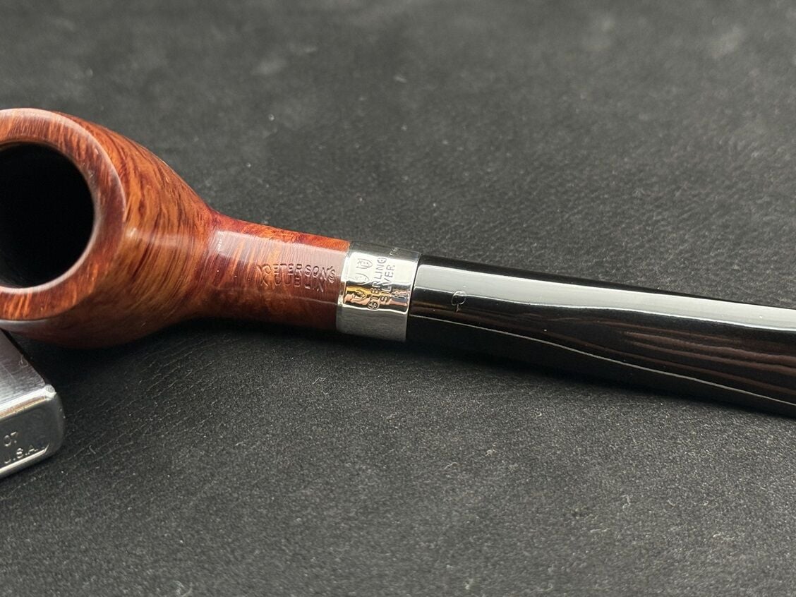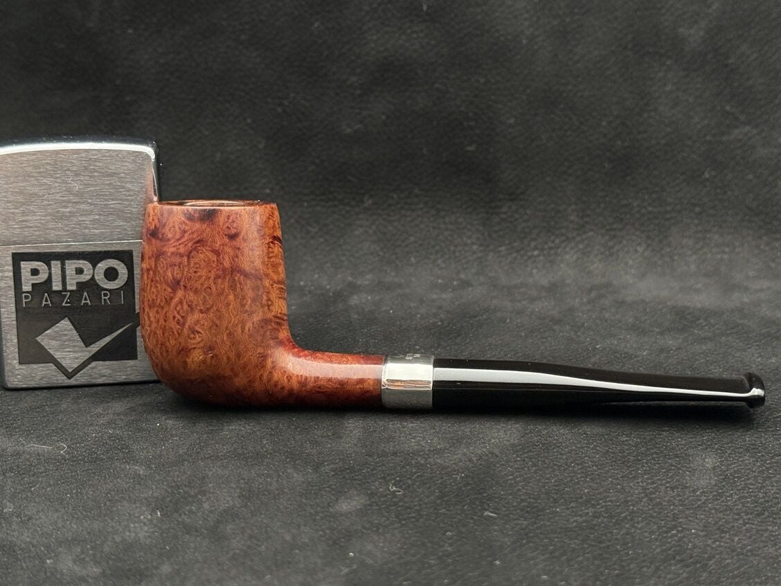 Peterson’un Sterling Silver serisi, markanın köklü İrlanda mirasını zarif detaylarla buluşturan özel bir koleksiyondur. D11 kodlu bu model, Dublin formuna yakın konik yapısıyla hem estetik hem de içim ergonomisi açısından dengeli bir duruş sergiliyor. Pürüzsüz cilalı yüzey, koyu tonlu briar dokusunu sade ve rafine bir şekilde yansıtarak pipoya klasik bir zarafet kazandırıyor. Gövde ile ağızlık arasındaki parlak gümüş yüzük, hem Sterling Silver serisinin ayırt edici özelliğini taşıyor hem de tasarıma sofistike bir dokunuş katıyor. Ebonit ağızlık ise nostaljik bir tercih olarak içim konforunu artırıyor. Filtresiz yapısı, doğrudan ve yoğun aromaları tercih edenler için ideal bir içim deneyimi sunuyor. Peterson’un bu modeli, sade ama seçkin duruşuyla hem koleksiyonluk hem de günlük kullanım için güçlü bir aday. Gümüş detayın kattığı zarafet, İrlanda pipoculuğunun geleneksel çizgileriyle birleşerek zamansız bir karakter ortaya koyuyor.
