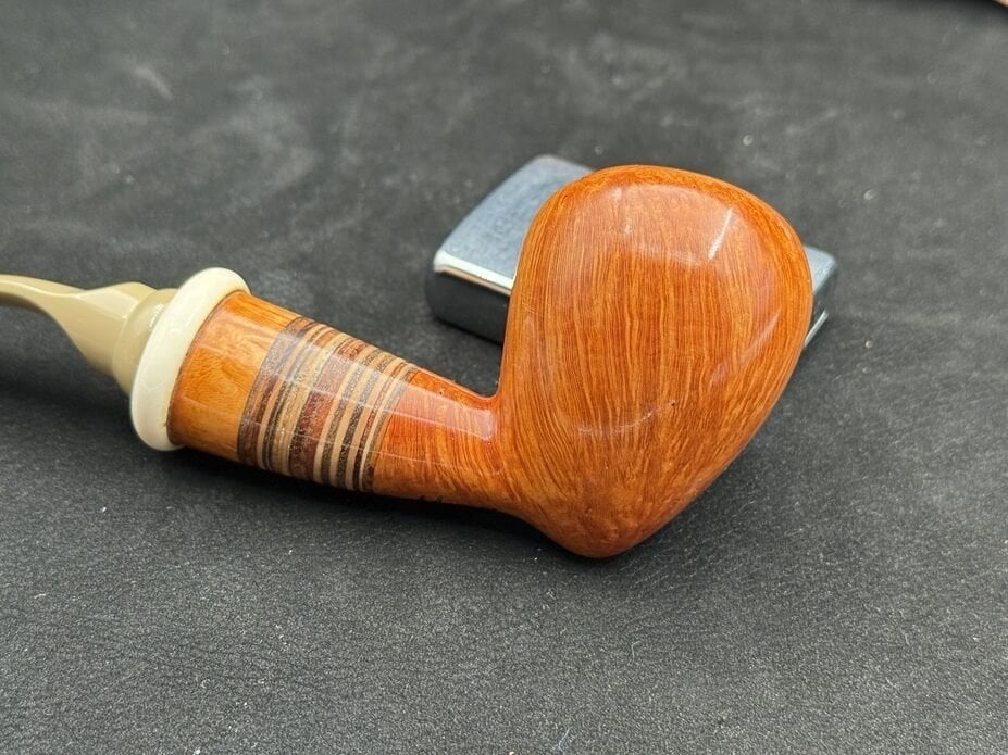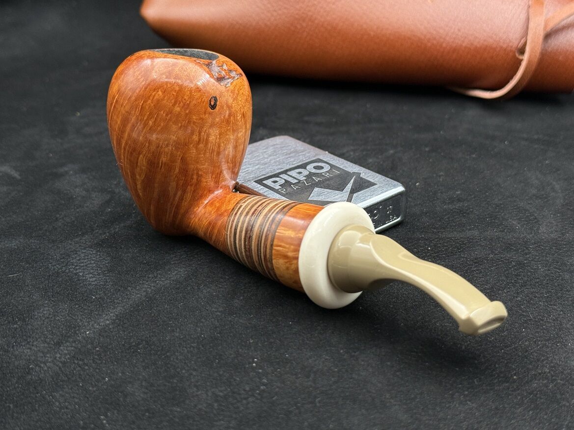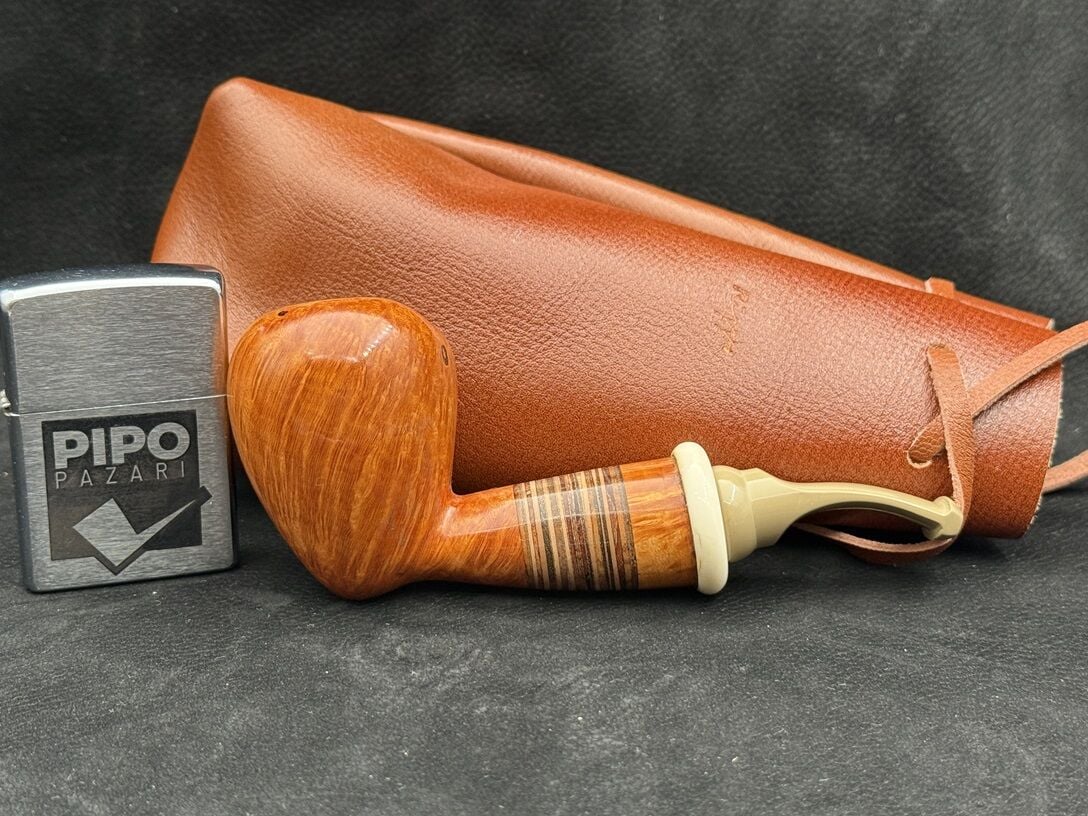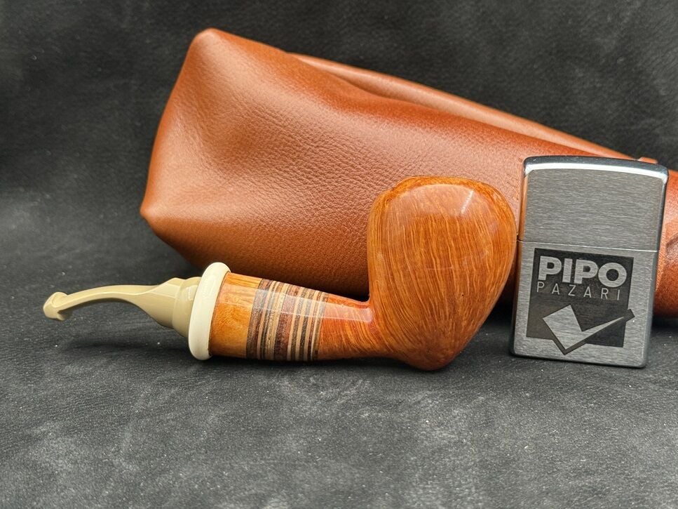 Piponun en dikkat çekici özelliği ise shank kısmında kullanılan ahşap yüzük. Yaklaşık 10 farklı ağacın bir araya getirilmesiyle oluşturulan bu detay, pipoya sanatsal bir değer katarken her bir parçayı eşsiz kılıyor. Ebonit ağızlık ise klasik ve konforlu bir tamamlayıcı olarak tasarımı bütünlüyor.