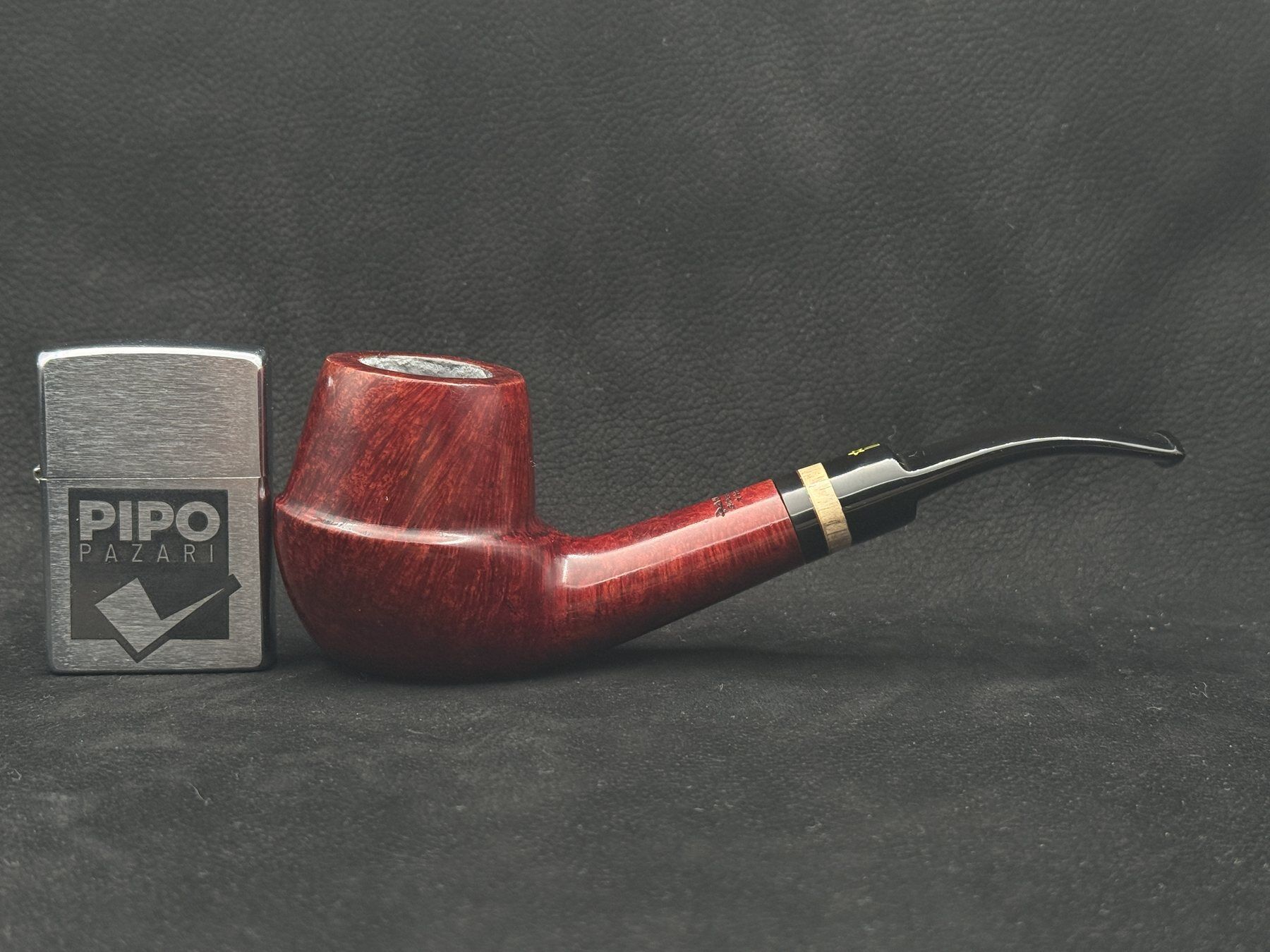 Pürüzsüz (smooth) bitiş, briar yüzeyindeki doğal dokuyu ve sıcak ton geçişlerini net biçimde ortaya çıkarır. 35,8 mm hazne dışı, 21,5 mm hazne iç çapı ve 39,3 mm hazne derinliği ile tütün kapasitesi açısından doyurucu bir yapı sunar. 51,6 mm hazne yüksekliği ise modele hem güçlü bir siluet hem de içim sırasında dengeli bir ısı yönetimi kazandırır. Şahin Professional 685 Superstar 5 Yıldız Bent Estate Pipo, bu ölçüleri sayesinde kısa değil, daha dolgun ve keyifli içimlere uygun bir karakter taşır.
