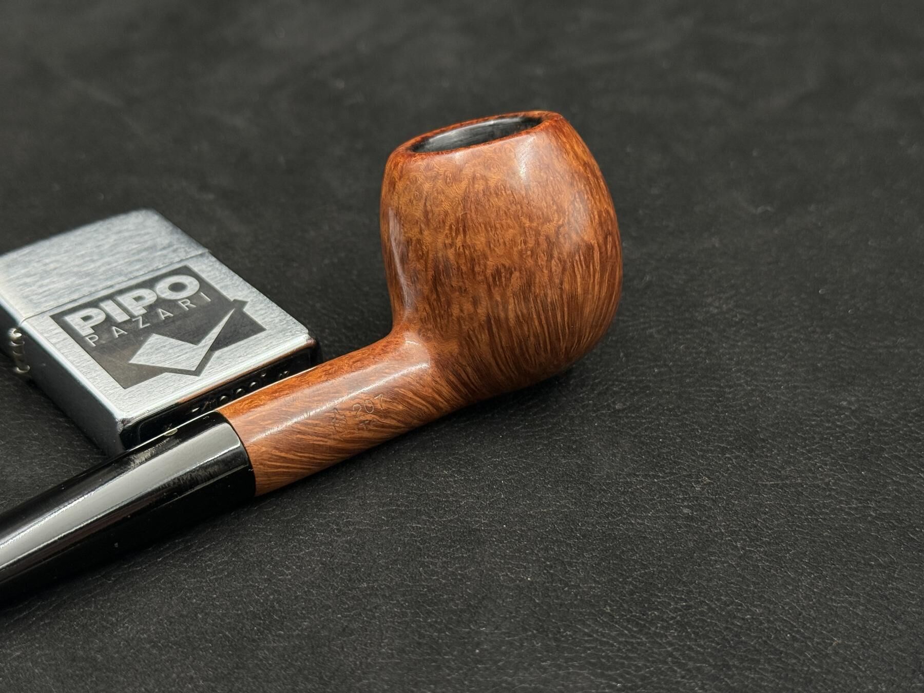 207 numaralı model, dengeli oranlarıyla bilinen klasik bir Billard formuna sahiptir. Uzun ve zarif sap yapısı, içim sırasında iyi bir denge sağlarken, pürüzsüz bitiş briar üzerindeki doğal damarları net biçimde ortaya çıkarır. 6 mm filtre uyumluluğu ve ebonit ağızlığıyla konforlu ve yumuşak bir içim sunar.