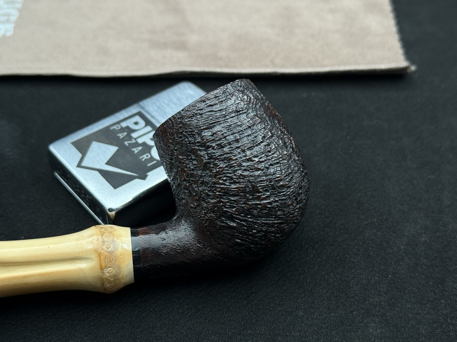 Bu Bamboo Sandblast modeli, derin kumlama dokusunun yarattığı karakterle dikkat çekiyor. Koyu gövde ile açık bambu arasındaki kontrast, pipoya güçlü bir görsel ritim kazandırıyor. Formdaki hafif eğim, elde konforu desteklerken dumanın doğal akışını da rahatça yönlendiriyor. Doğal malzemenin kendi hikâyesini anlatmasına izin veren bir tasarım… Sükûnet ve güç aynı çizgide buluşuyor.