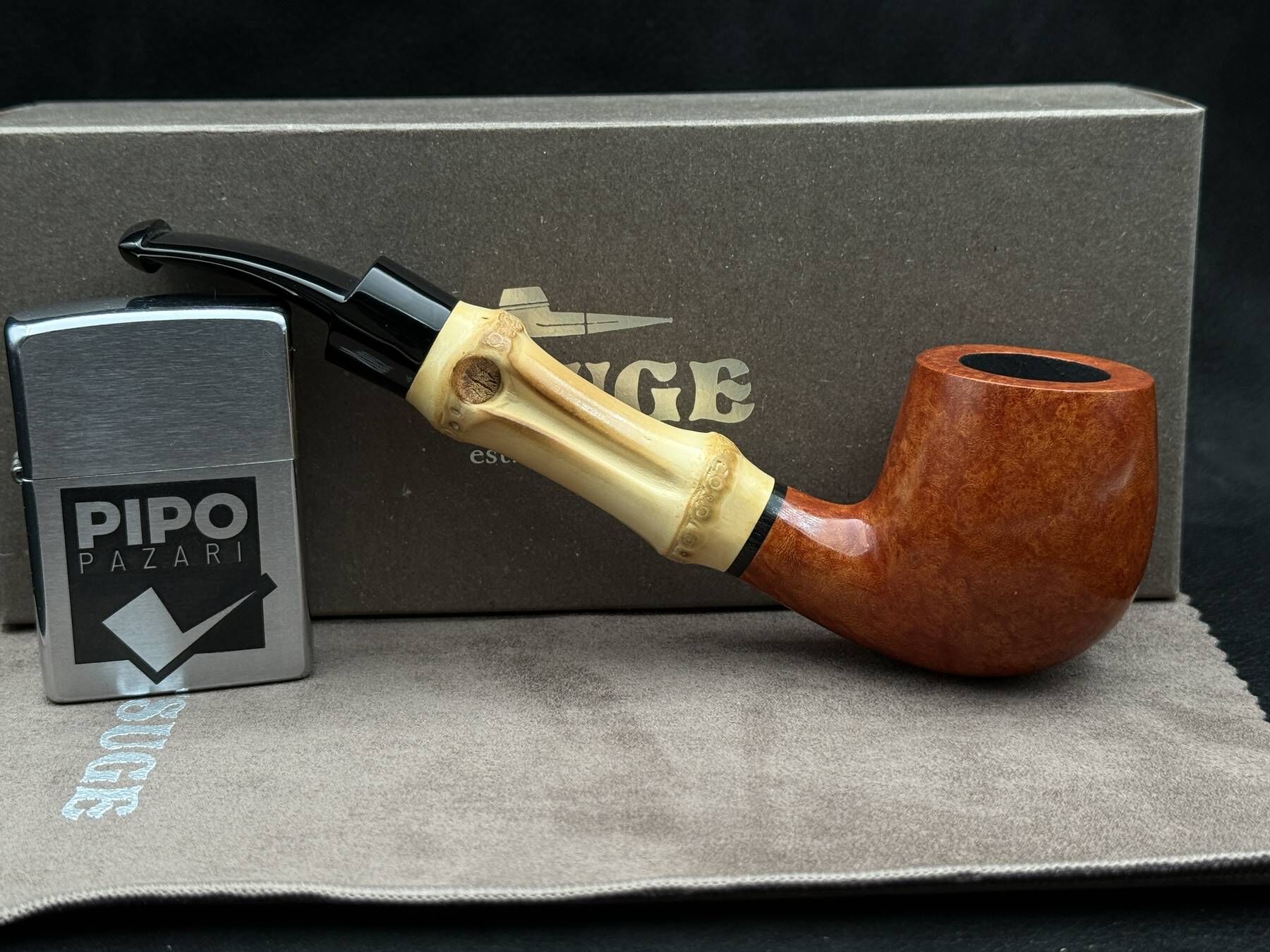 Tsuge, Japon zanaatkârlığının sadelik ve doğallık üzerine kurulu estetik felsefesini pipolarında zarif biçimde ifade eder. Formun dengesi, yüzeyin berrak dokusu ve bambunun organik karakteri bir araya gelerek içim deneyimini aynı zamanda bir görsel ritüele dönüştürür.