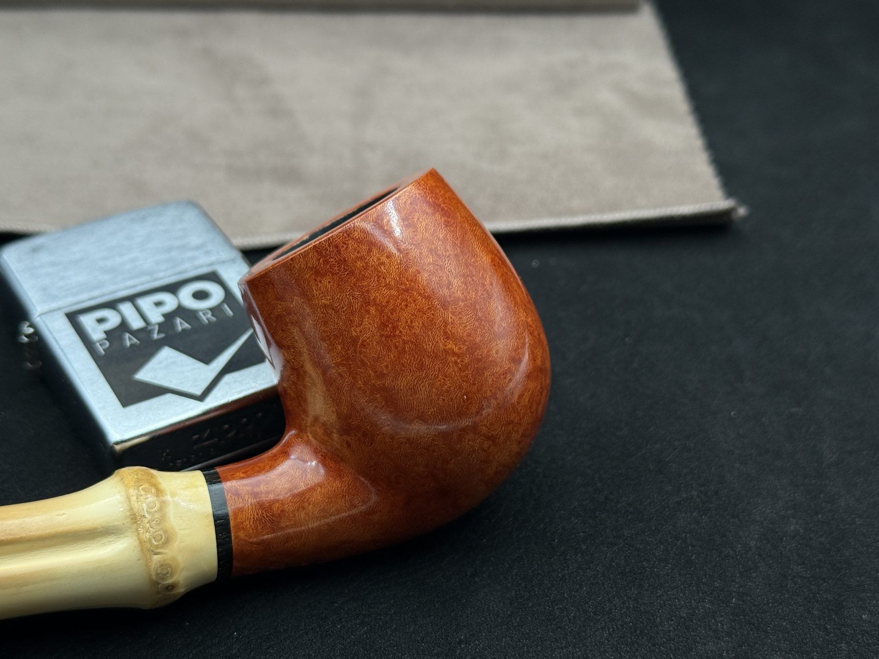Bu Bamboo Smooth modeli, sıcak briar tonlarıyla bambunun yalın rengi arasında yumuşak bir uyum kuruyor. Pürüzsüz yüzeyde ilerleyen damar hareketleri sade, dengeli ve dingin bir görsellik sunuyor. Half bent form, elde konforu ve içimde akıcılığı desteklerken, piponun genel duruşu Japon tasarımındaki “az ama değerli” anlayışını başarıyla yansıtıyor. Sessiz bir zarafet… Tamamen özüyle var olan bir estetik.