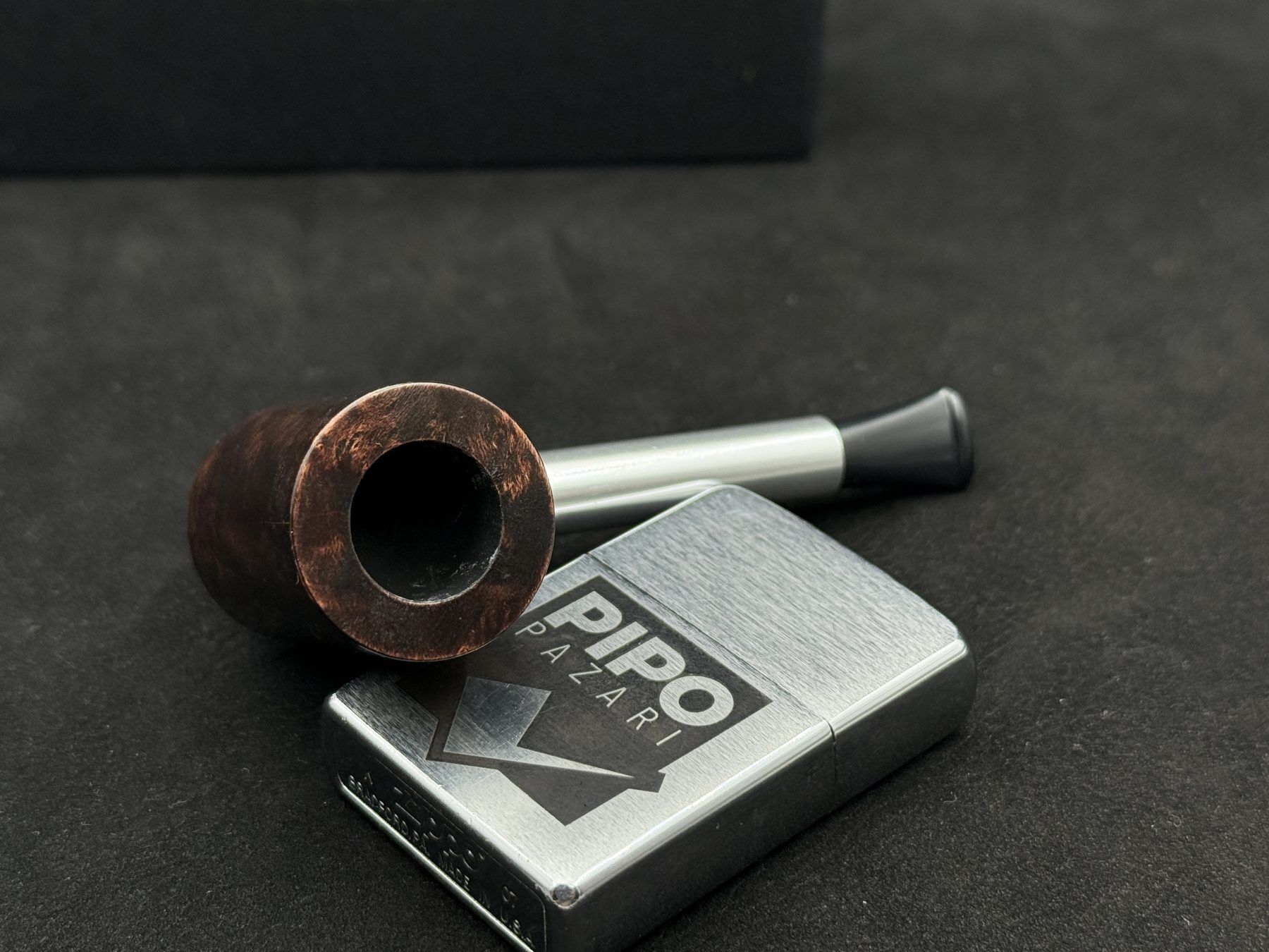 Capito Chubby Smooth modeli, koyu kahve briar yüzeyindeki doğal damar akışını sade ve parlak bir görünümle sergiliyor. Poker formunun dik ve kararlı duruşu, piponun hem kullanımda hem de sergilemede dikkat çekici bir denge oluşturmasını sağlıyor. Küçük boyutuna rağmen etkili bir içim performansı sunan bu model, minimal tasarımın güçlü bir ifade biçimine dönüşebileceğini kanıtlıyor.